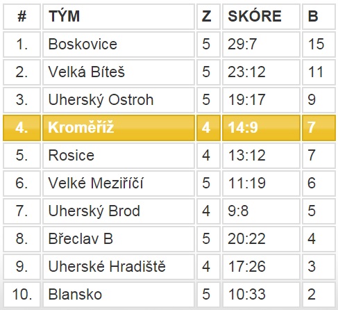 Příští zápas hrají Hanáci doma v sobotu 24. října od 17:00 se Štikou Rosice. O středečním svátku 28. října hostí Hanáci od 18 hodin dosud vedoucí klub SK Minerva Boskovice, který vloni porazili 7:2.