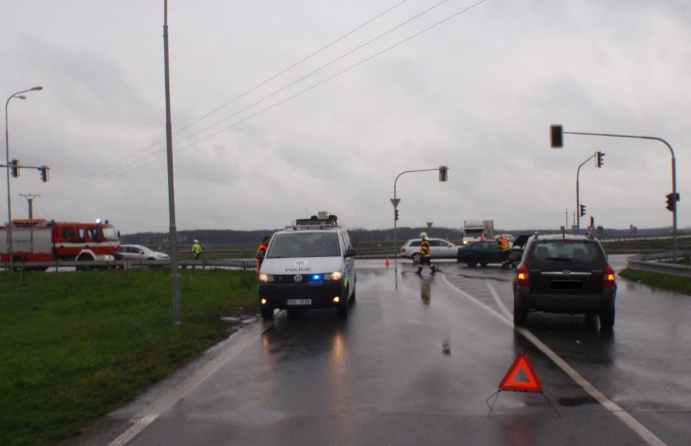 Nehoda osobního vozidla zn. Škoda Octavia a SUV Hyundai Tucson zablokovala část křižovatky ulic Hulínská a Jožky Silného na výjezdu z Kroměříže.