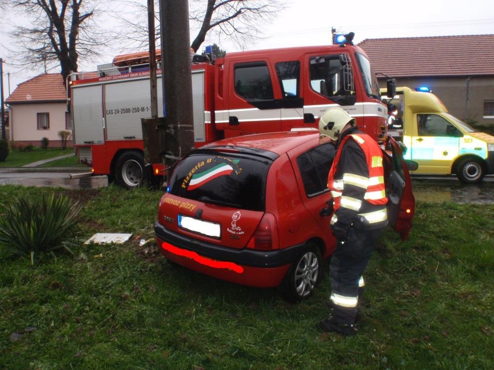 Osobní vozidlo zn. Renault se při objíždění zaparkovaného vozidla dostalo mimo komunikaci, kde narazilo do sloupu elektrického vedení. V okamžiku nehody cestovaly v osobním vozidle dvě osoby. Jedna byla následně zdravotnickou záchrannou službou transportován k dalšímu ošetření do nemocnice, druhá zůstala po ošetření na místě. Oba zranění se z vraku vozidla dostali bez nutnosti vyproštění.