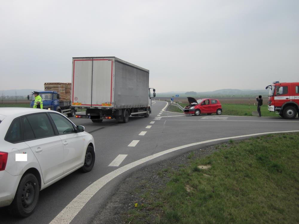 "Při příjezdu hasiči zjistili, že došlo k nehodě nákladního vozu Renault s osobním vozem Toyota Yaris. Řidička z vozu Toyota si začala stěžovat na zdravotní potíže, a proto byla přivolána Zdravotní záchranná služba Zlínského kraje, která řidičku později převezla sanitkou k dalšímu ošetření do nemocnice," uvedl Roman Žemlička z HZS Zlínského kraje.