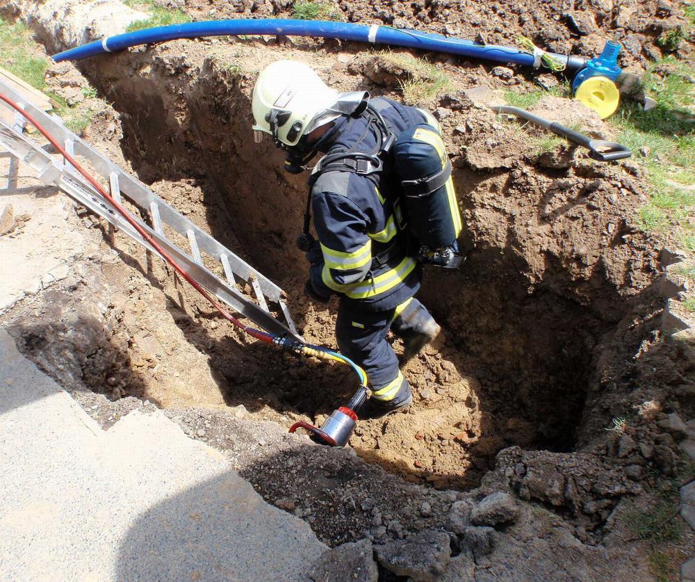 Po zajištění okolí místa události slezl jeden ze zasahujících hasičů vybavený dýchací technikou do výkopu a za pomoci hydraulického zařízení zaškrtil překopnuté potrubí. Jeho další opravu provedli zaměstnanci pohotovostní služby plynárenské společnosti.