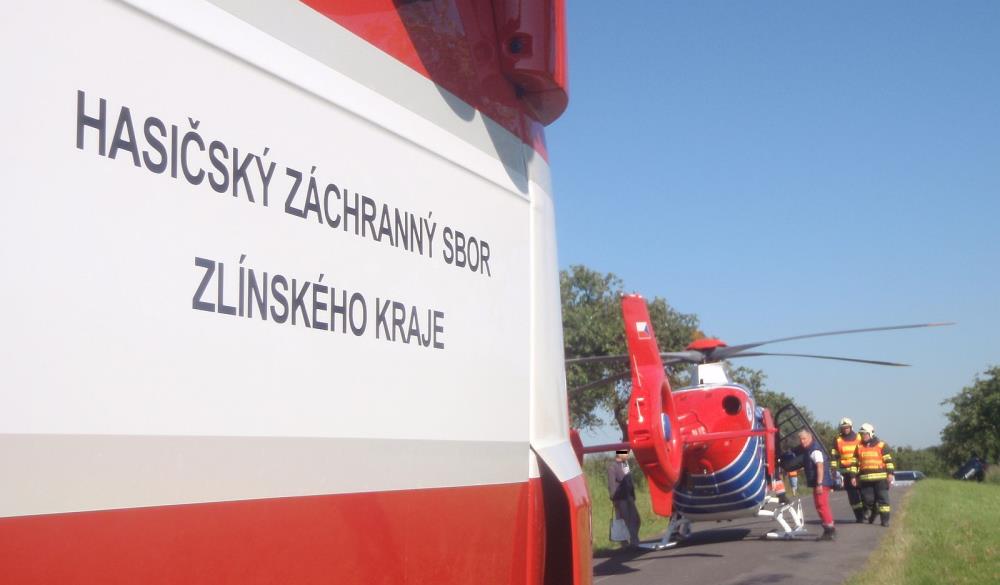 Zraněná řidička skončila v péči posádky letecké záchranné služby, které při jejím ošetření a následném transportu do vrtulníku asistovali i zasahující hasiči.