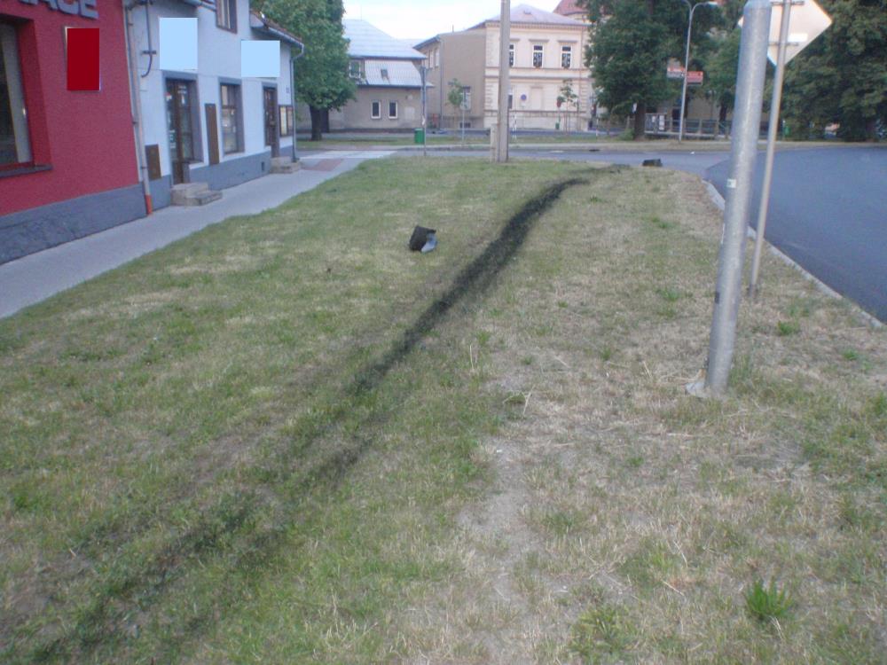 Osobní auto Škoda Octavia stálo v době příjezdu hasičů na chodníku. Od obrubníku ulice Meziříčská až k vozidlu vedly v trávníku vyjeté koleje od kol auta. Hasiči zjistili, že vůz má proraženou olejovou vanu. Olej byl vyteklý na chodníku pod vozidlem. Osádka auta nebyla zraněná. Hasiči provedli protipožární opatření a vyteklý olej zasypali sorbentem.
