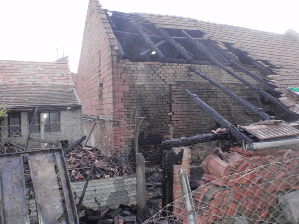 Požár vznikl v přístřešku na dřevo a odtud se rozšířil do půdního prostoru stodoly. Stavba poškozená požárem je součástí bloku rodinných domů a hospodářských objektů.