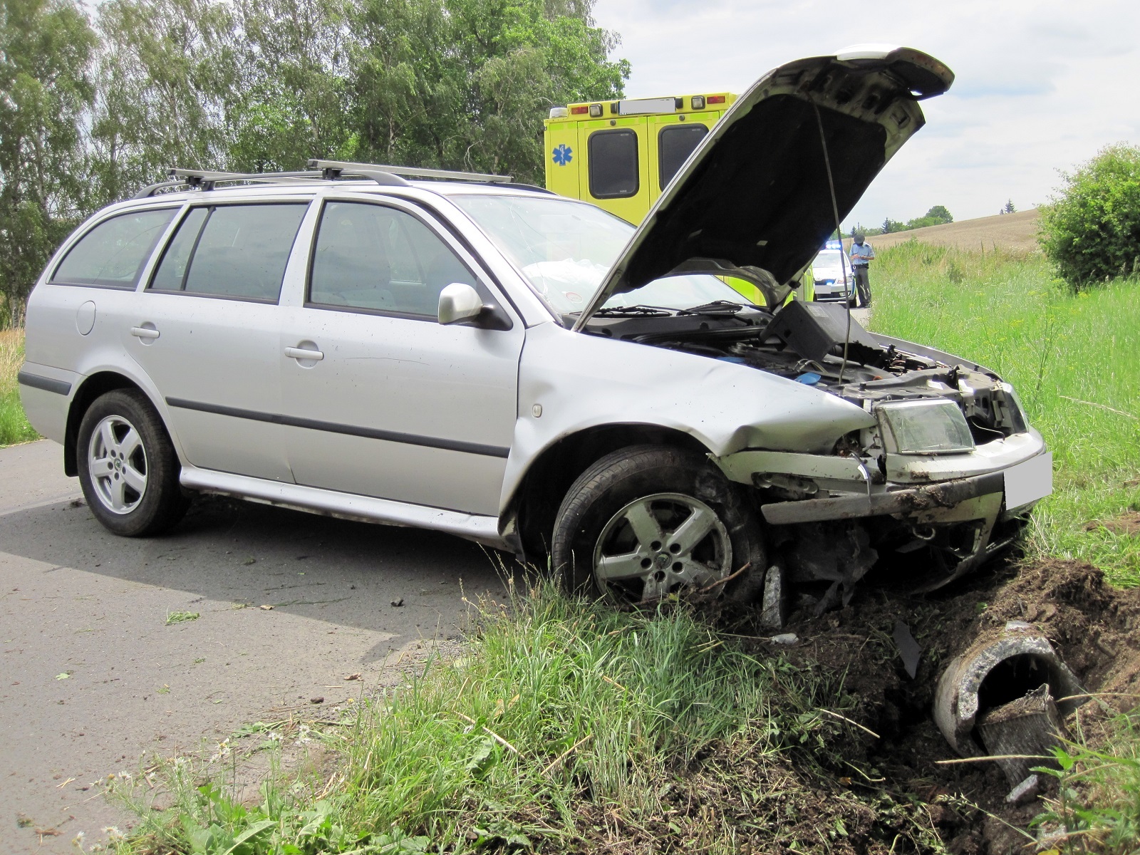 Osobní automobil Škoda Octavia sjel mimo vozovku do příkopu, kde narazil do betonového mostku. V době nehody v něm cestovaly dvě dospělé osoby a dvě děti. Zraněné spolujezdkyni hasiči okamžitě poskytli první předlékařskou pomoc, a po příjezdu zdravotnické záchranné služby byla předána do jejich péče. Následně byla odvezena do nemocnice. Dvě děti viditelně zraněny nebyly, ale záchranáři je pro jistotu odvezli také k dalšímu vyšetření. Od hasičů děti obdržely plyšového dráčka Záchranáčka, aby lépe zvládly stresovou situaci.