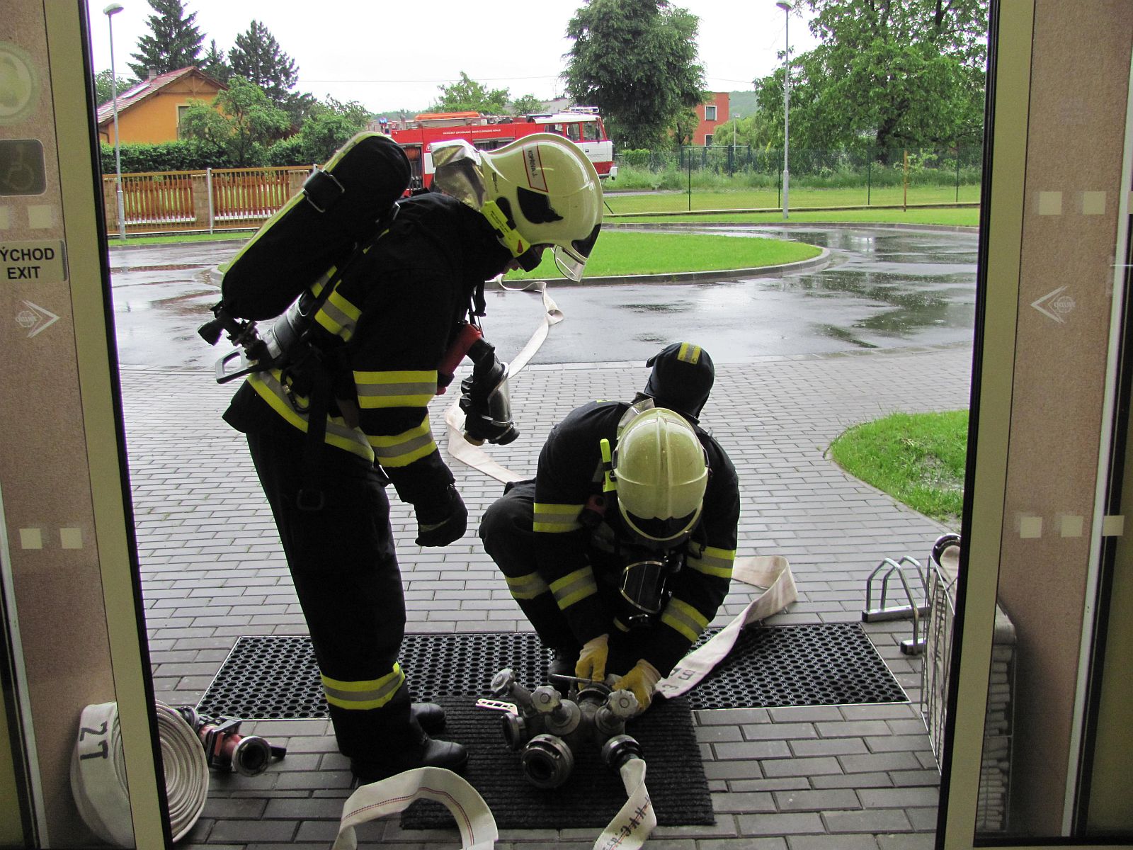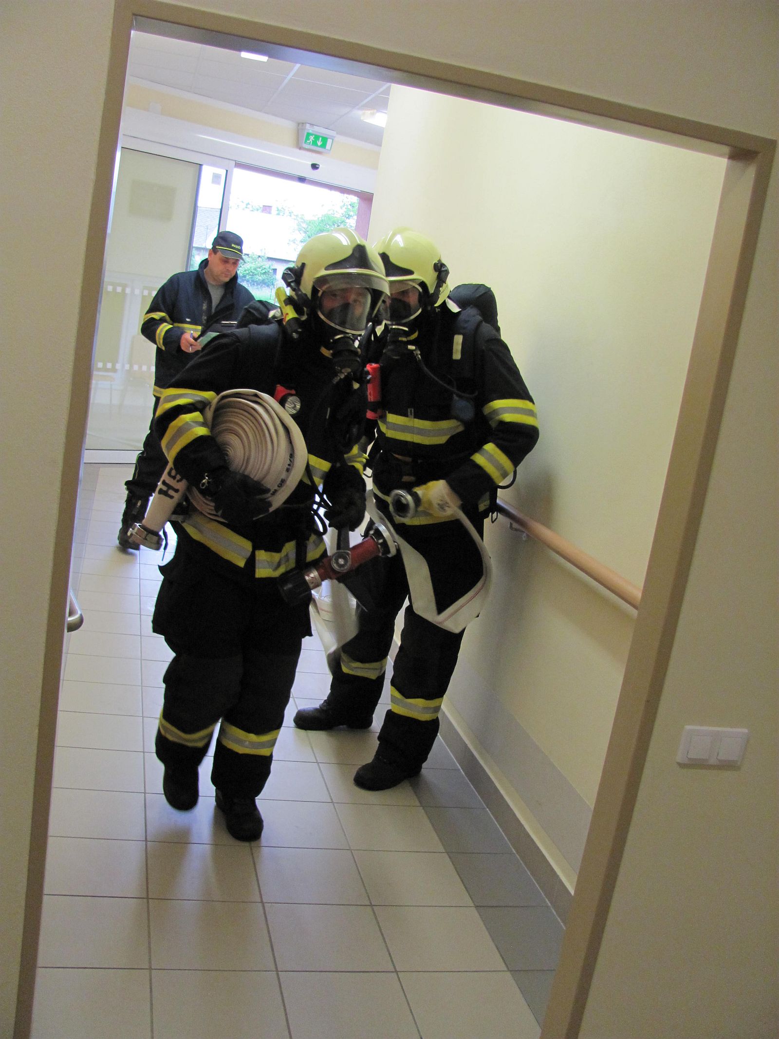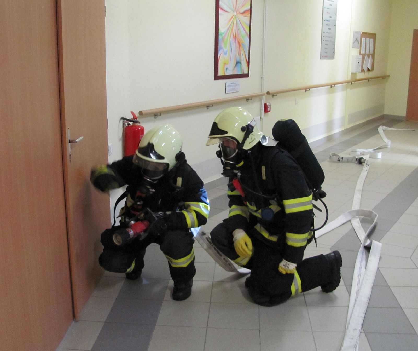 Úkolem profesionálních a dobrovolných hasičů, kteří byli na místo cvičení vysláni, pak bylo zvládnutí rozvíjejícího se požáru. Požární útok byl veden několika útočnými proudy a za využití rozdělovačů. Pro doplnění techniky bylo nutné také zřídit přívodní vedení od nedalekého podzemního hydrantu.