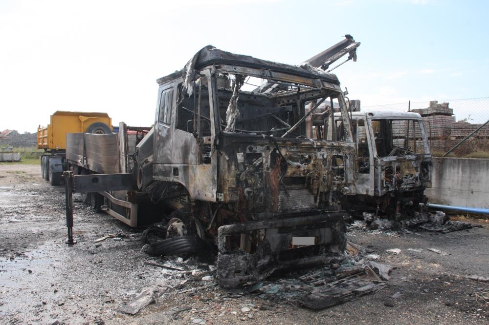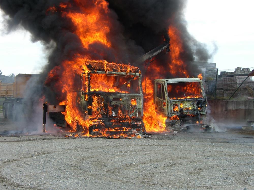 Hasiče navigoval k místu požáru hustý černý kouř. Při příjezdu hasičů byly oba nákladní vozy značky IVECO celé v plamenech. Asi 5 metrů od hořících aut stál sklad s hořlavými kapalinami. Hasiči oba hořící náklaďáky uhasili dvěma útočnými C proudy vody. Po uhašení zkontrolovali teploty stavebních konstrukcí hořlavých kapalin a dalších vozidel zaparkovaných v blízkosti hořících vozů. Následně dohasili skryté ohniska požáru.