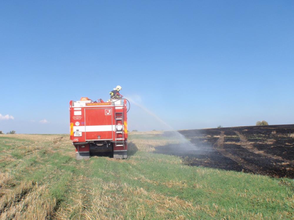 Občané ohlásili v 14:36 hodin hasičům, že jim za domy hoří asi 5 hektarů strniště. K uhašení požáru vyjela jednotka profesionálních hasičů z požární stanice Kroměříž a jednotky dobrovolných hasičů z Kroměříže a Ratají. Uhasit plameny vyjely dohromady čtyři automobilové stříkačky.