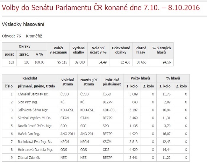 Výsledky voleb do Senátu - volební obvod 76 - Kroměříž: