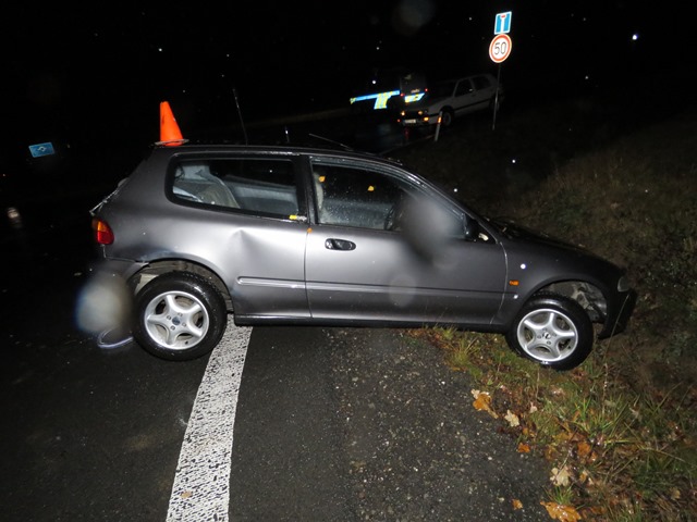 Poté vjel zpět na silnici a nacouval do stěny garáže. Poškodil jak fasádu, tak páté dveře auta. Vysklil výplň okna u zavazadlového prostoru. Následně z místa odjel. Dostal se až na křižovatku ulic Meziříčská a Cihelna, kde nezvládl řízení a havaroval v příkopu. Vyvázl bez zranění. Nadýchal 1,62 promile. Policisté mu další jízdu zakázali a odebrali mu řidičský průkaz.