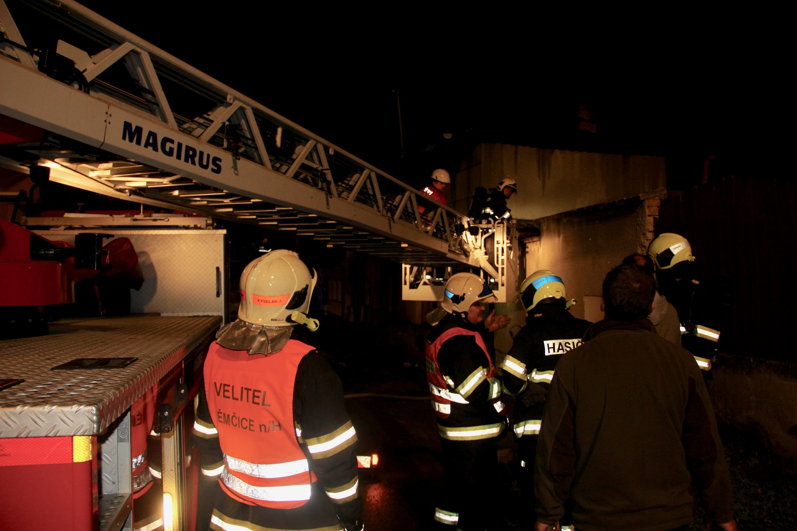 V době příjezdu první jednotky hasičů byla celá střecha rodinného domu v plamenech a eternitová střešní krytina vystřelovala do okolí. Hasiči postupně nasadili čtyři útočné proudy vody a vodou hasili střechu i z výškové techniky. Tím se jim podařilo zabránit rozšíření požáru na sousední rodinný dům.