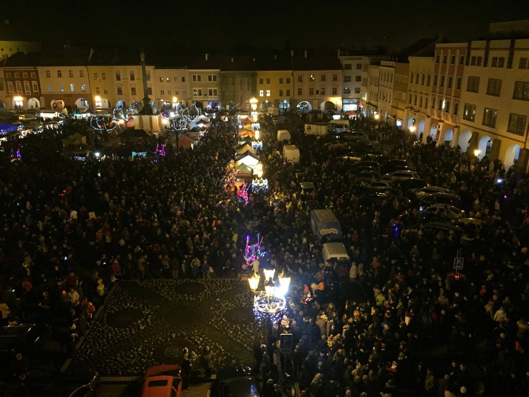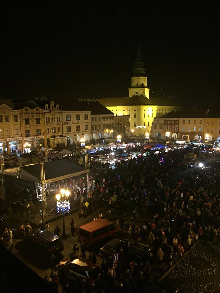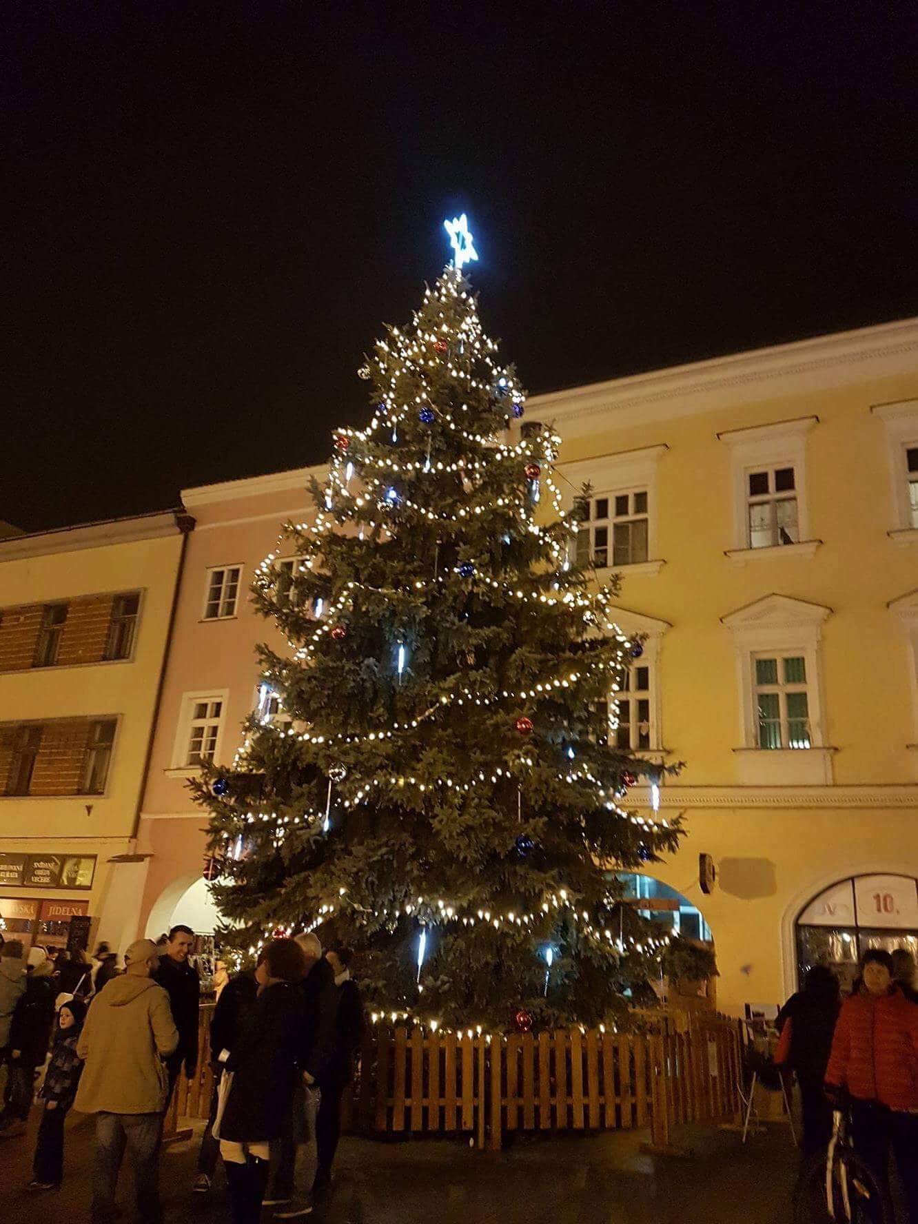 Svařák, punč a všelijaké dobroty z místní i přespolní kuchyně: takové bylo rozsvícení vánočního stromu na Velkém náměstí v Kroměříži.