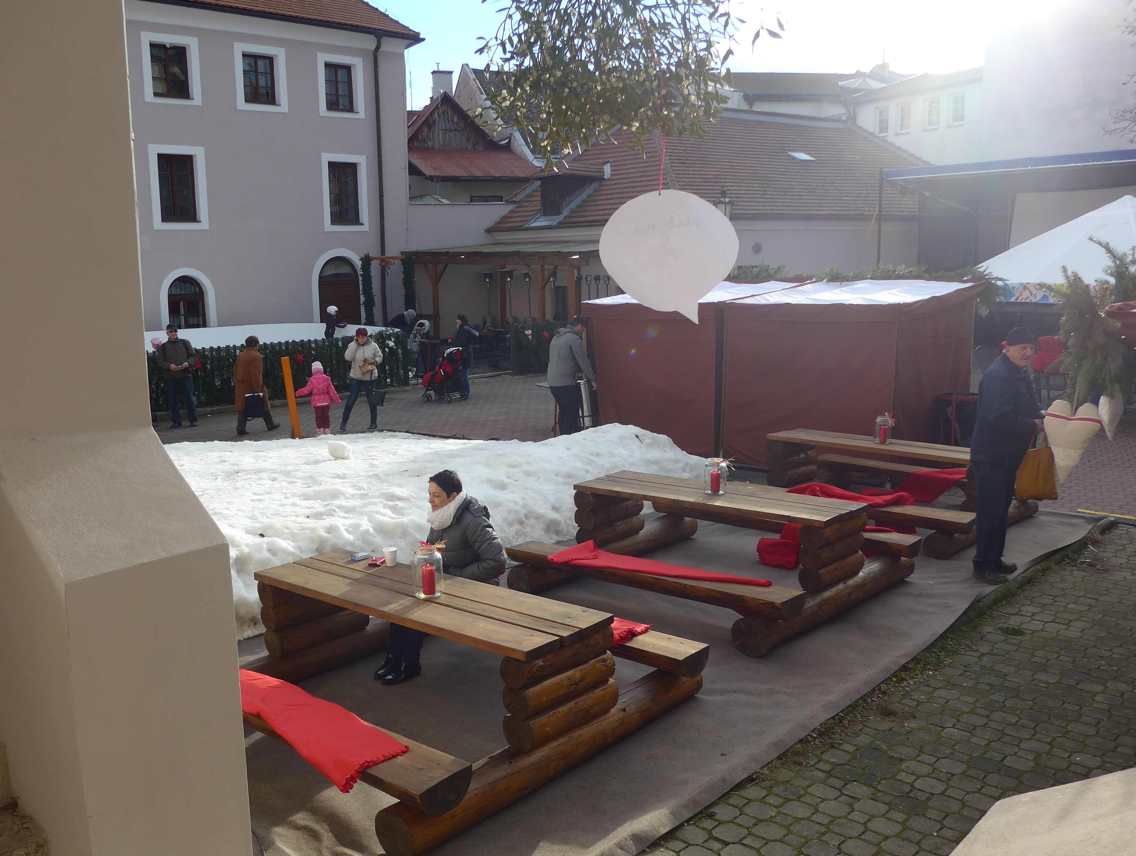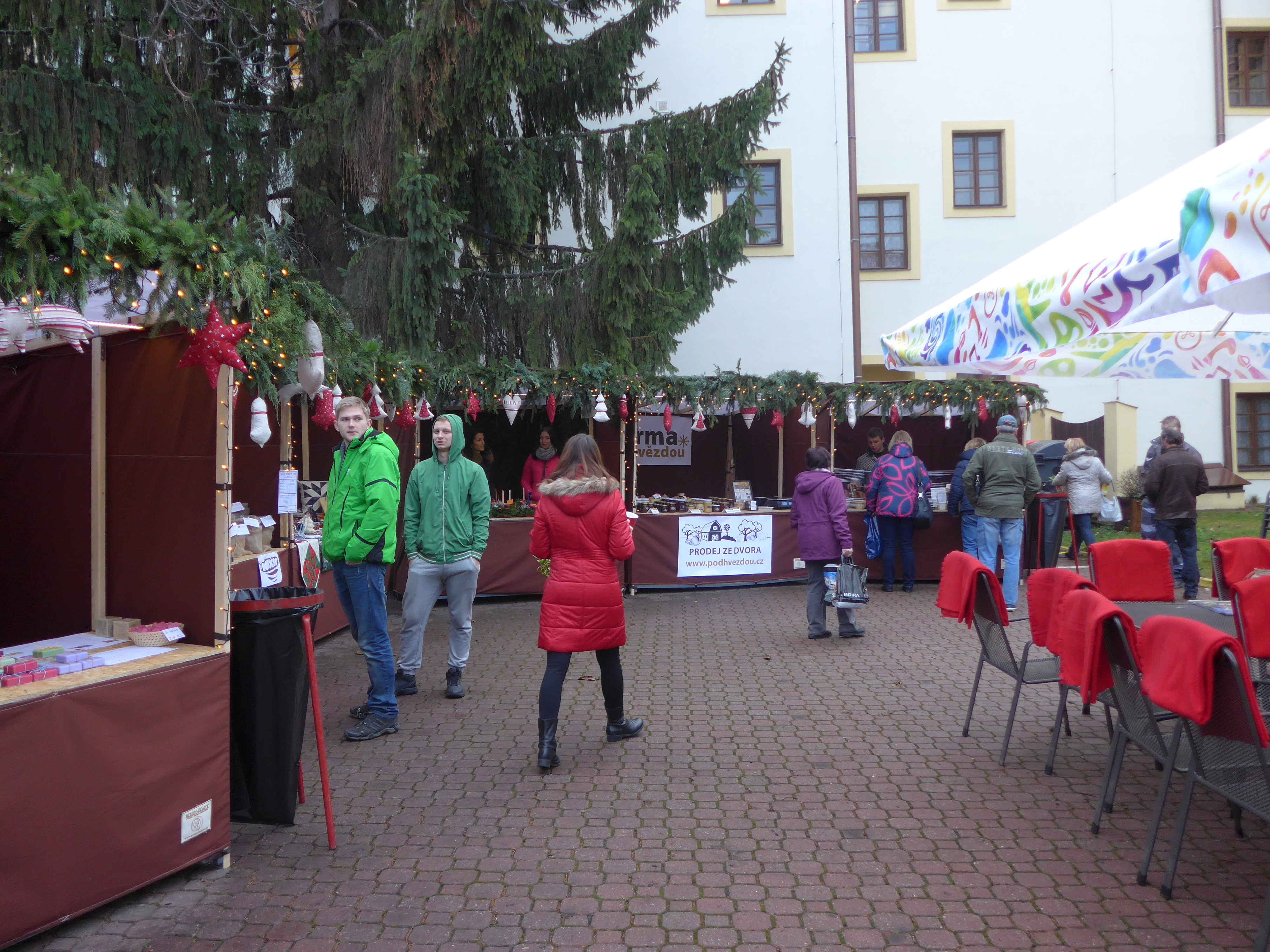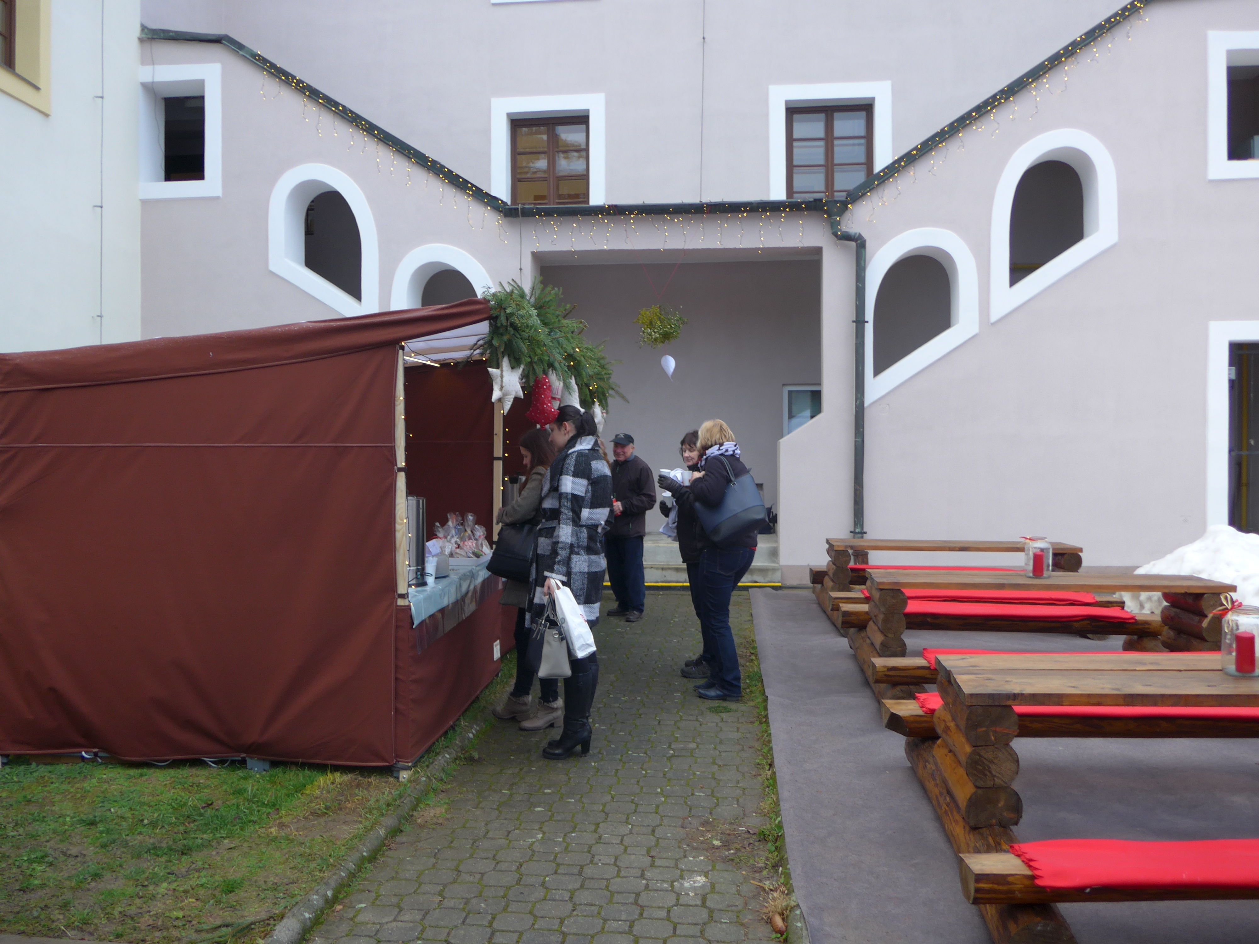Nádvoří radnice a Klubu Starý pivovar se v pondělí dopoledne otevřelo pro všechny, kdo mají chuť a čas zastavit se v předvánočním shonu a načerpat energii z teplého punče či jiných dobrot, které jsou tu pro návštěvníky vánočních trhů připraveny.