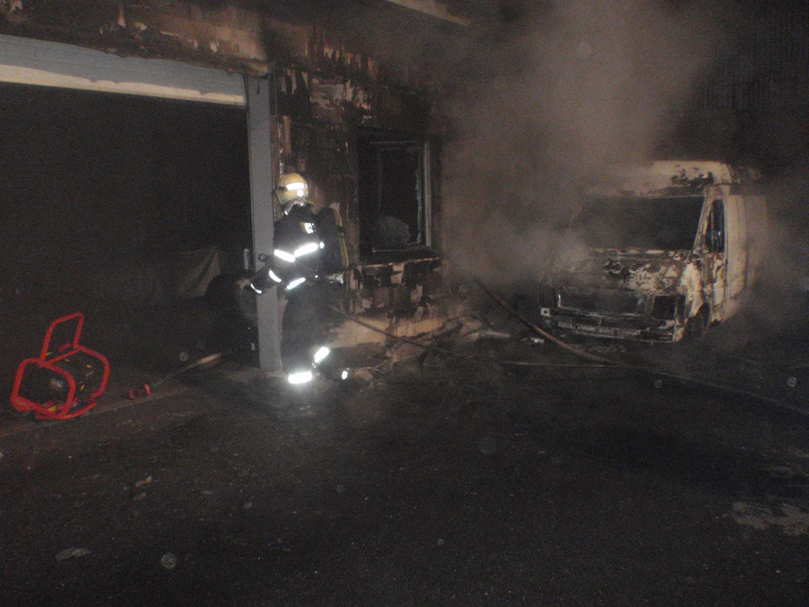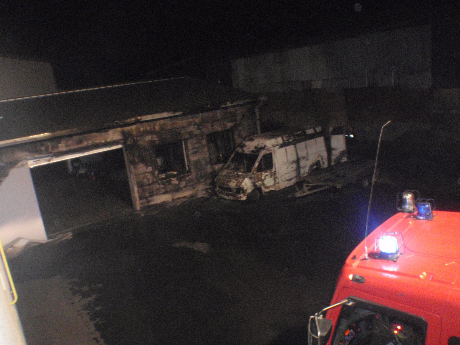 Jak se ukázalo na místě události, požárem byla zasažena zaparkovaná dodávka zn. VW, u blízkého objektu došlo pouze k zasažení části povrchu obvodové konstrukce a to především působením sálavého tepla. K rozšíření požáru do vnitřní části objektu a na jeho střešní konstrukce již nestačilo dojít. Vnitřní prostory objektu byly pouze silně zakouřeny.