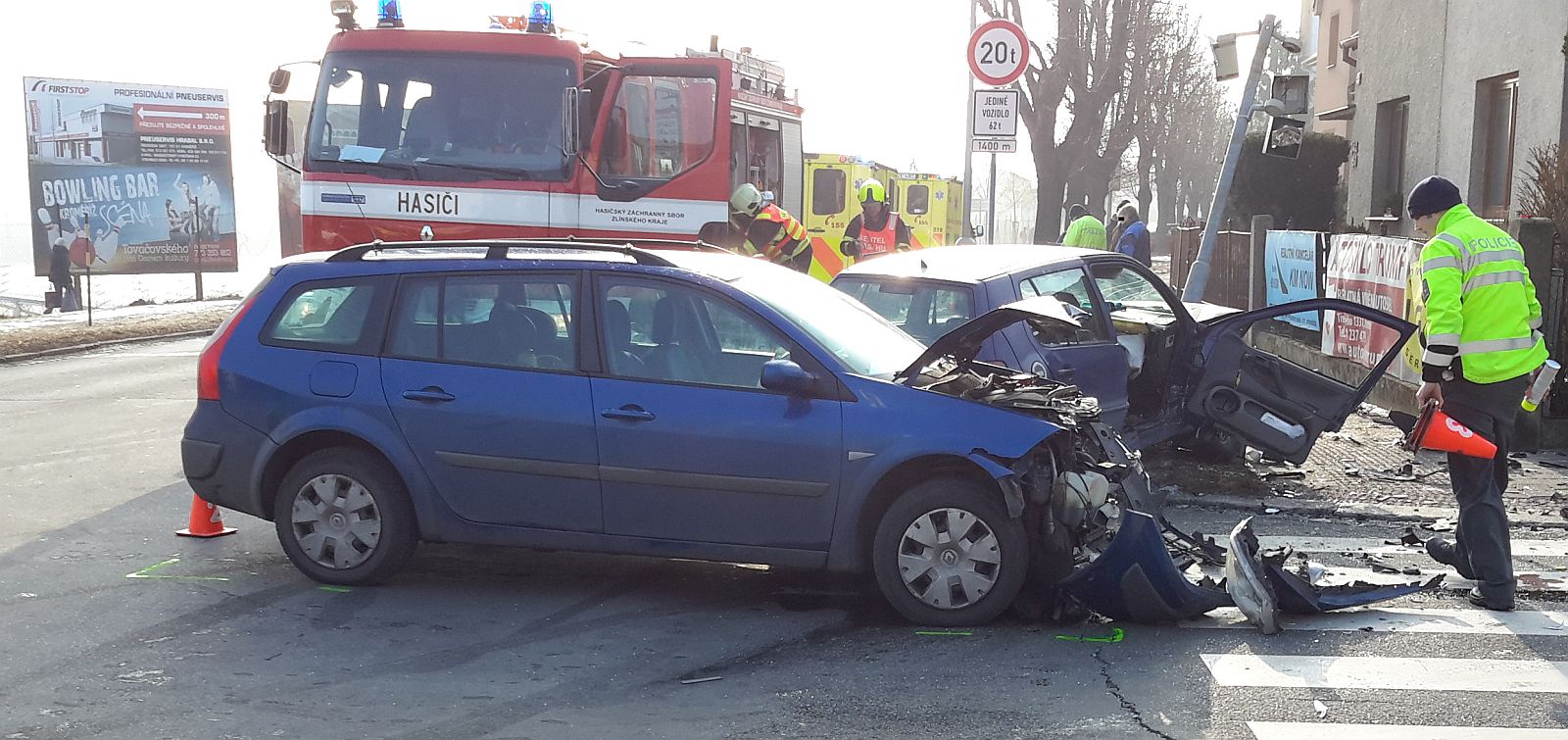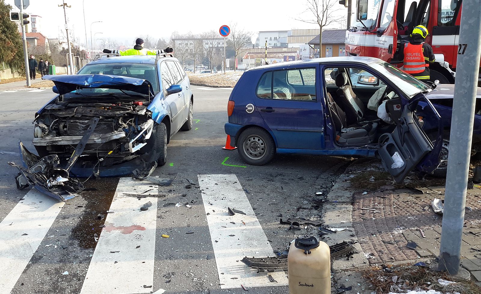 Ke střetu osobních vozidel Renault Megane a VW Polo došlo v prostoru křižovatky ulic Moravská, Obvodová a Kotojedská. Ve vozidle VW Polo cestovaly dvě ženy, které byly při střetu zraněny. Spolujezdkyně zůstala navíc ve vraku uvězněna.