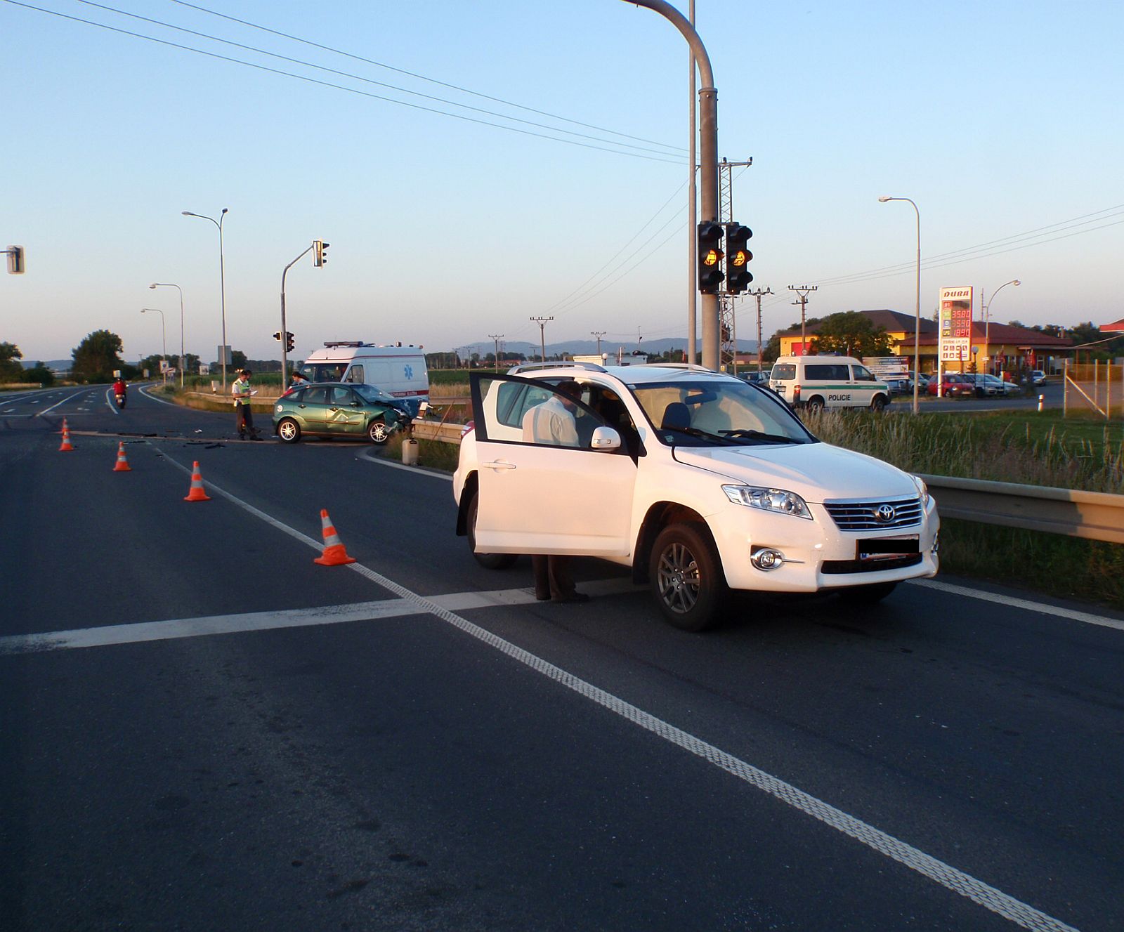 V pondělí večer krátce po osmé hodině byli kroměřížští dopravní policisté vysláni k nehodě, která se stala na ulici Hulínská v Kroměříži. Pětačtyřicetiletý zahraniční řidič ve vozidle Toyota Rav 4 tam nedal přednost autu na hlavní silnici. Cizinec jel ve směru od sjezdu z dálnice D1 a hodlal křižovatkou projet v přímém směru do ulice Jožky Silného. Při průjezdu ale nerespektoval dopravní značku Dej přednost v jízdě a vjel do křižovatky právě v okamžiku, kdy tudy projížděla čtyřiatřicetiletá řidička z Kroměříže v automobilu Ford Focus. Žena jela po hlavní silnici ve směru od Hulína na Kroměříž. Došlo ke střetu, při kterém byl ford odmrštěn vlevo na ocelová svodidla. Řidička při nehodě utrpěla středně těžké zranění. Muž za volantem toyoty vyvázl bez úhony. Na vozidlech vznikla škoda dvě stě dvacet tisíc korun, na svodidlech pak pět tisíc.