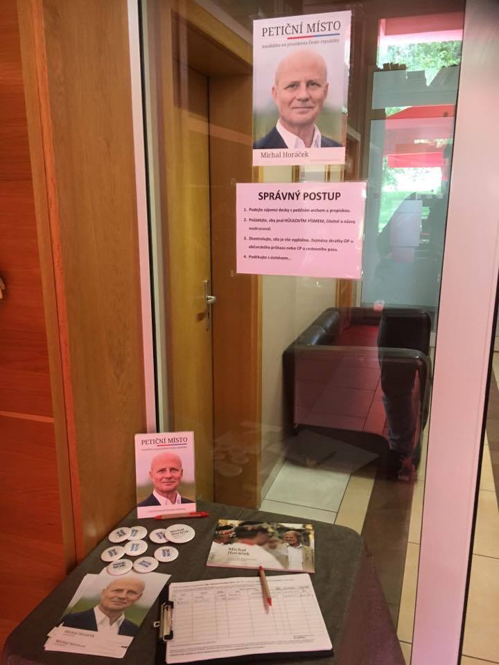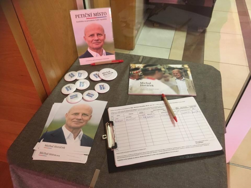 Kandidát na funkci prezidenta České republiky Michal Horáček odstartoval sběr petičních podpisů, které jsou podle zákona nezbytné k tomu, aby byla kandidatura na prezidenta uznána za platnou. Uchazeči pro prezidentské volební klání musí nasbírat alespoň 50 000 podpisů. Od 16. 4. se objevují po celé České republice petiční místa, kde můžete svým podpisem podpořit Michala Horáčka v kampani.
