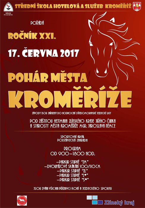 I v letošním roce proběhne již 21. ročník jezdeckých závodů O Pohár města Kroměříže, který pořádá Střední škola hotelová a služeb. Letošní ročník bude pod záštitou hejtmana Zlínského kraje Jiřího Čunka a starosty města Kroměříže Jaroslava Němce. Celý program bude probíhat 17. června od 9 do 18 hodin ve sportovním areálu Podzámecké zahrady.