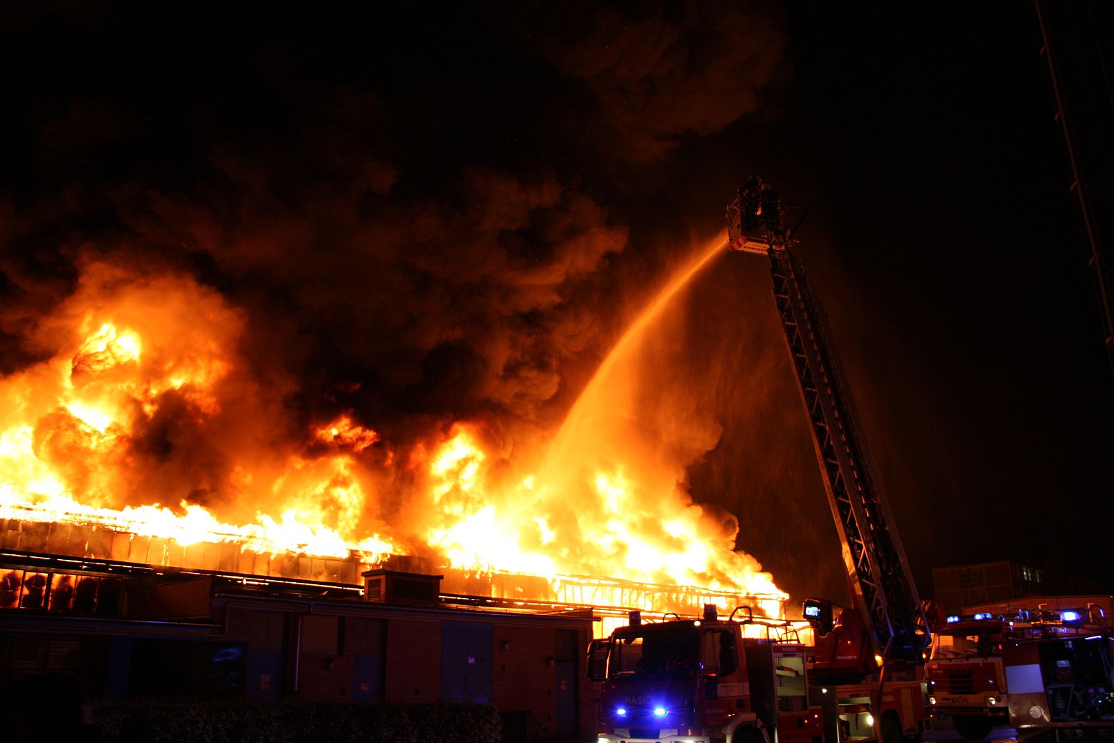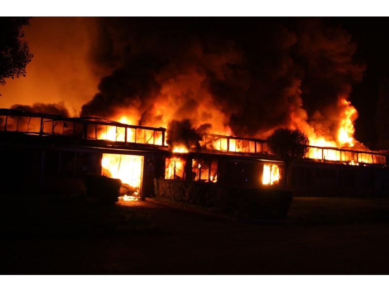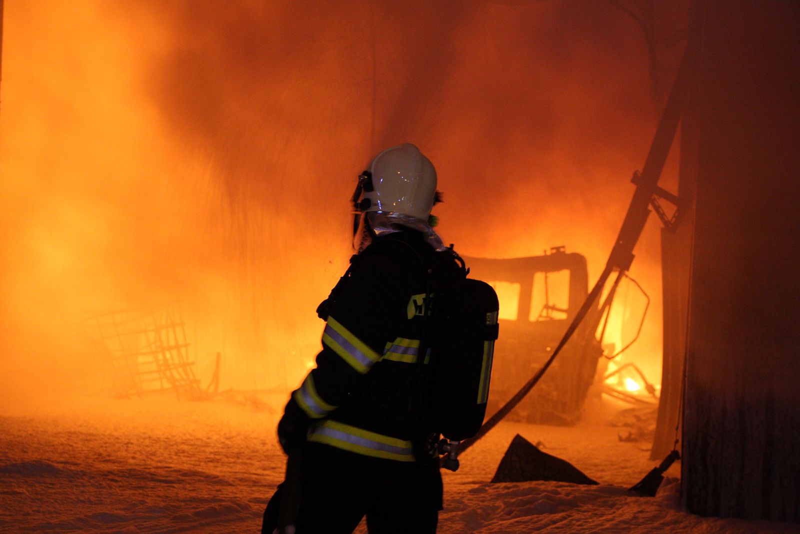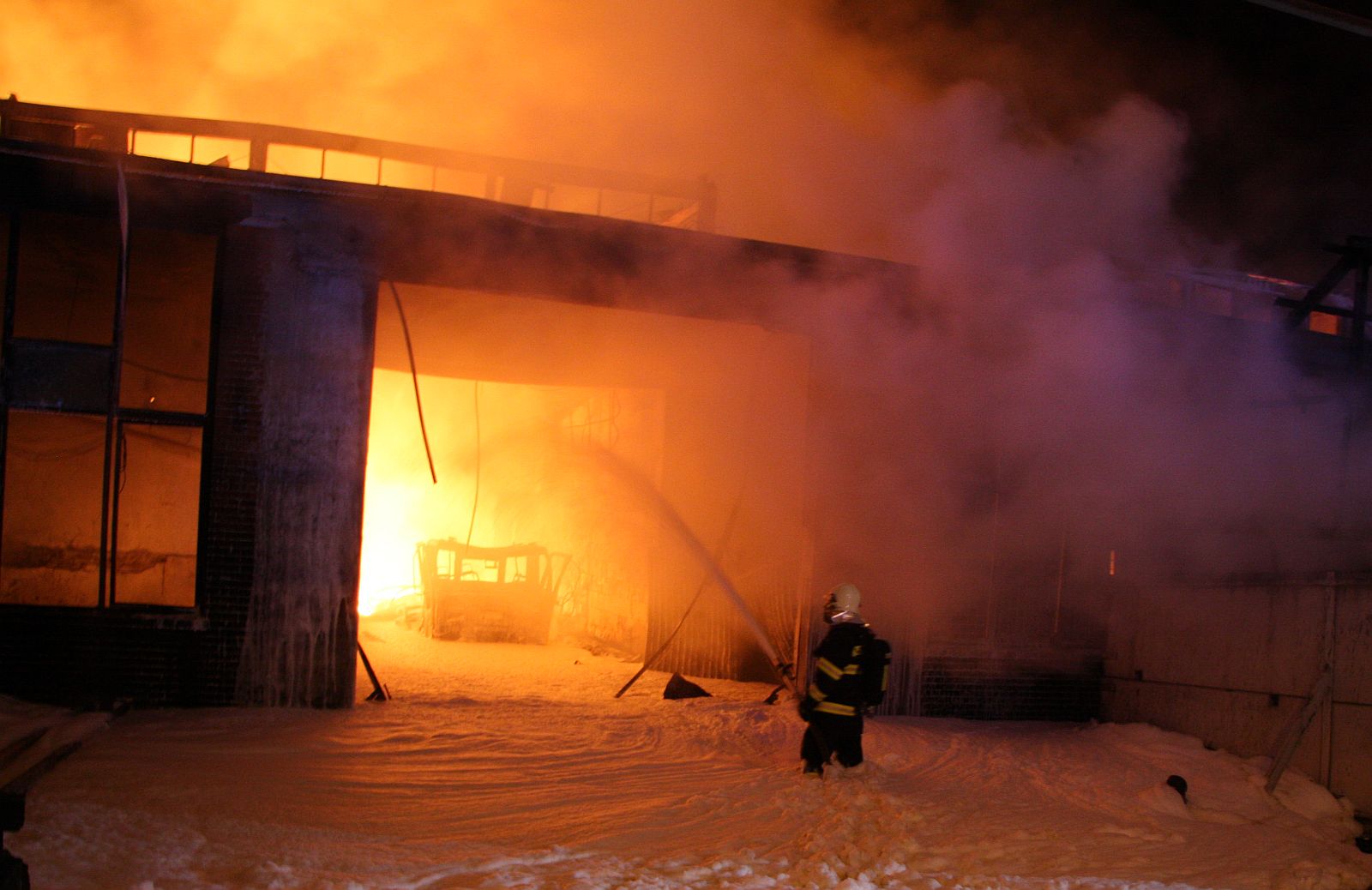 Požár, který vypukl krátce po desáté hodině večer, zasáhl prakticky celý jednopodlažní objekt o půdorysu asi 15 x 30 metrů. Plameny šlehaly vysoko nad střešní konstrukce a z objektu se postupně ozývaly výbuchy tlakových lahví. Hasiči byli nuceni ustoupit do bezpečné vzdálenosti a objekt hasit pouze z vnější strany. Vstup do vnitřních prostor byl naprosto vyloučen. Kromě výbuchů tlakových lahví a destrukcí stavebních konstrukcí objektu hasičům komplikoval zásah také vysoký žár. V jednom časovém úseku museli někteří hasiči opustit koše výškové techniky, protože žár nad objektem byl tak silný, že se jim začaly tavit obličejové masky dýchací techniky.