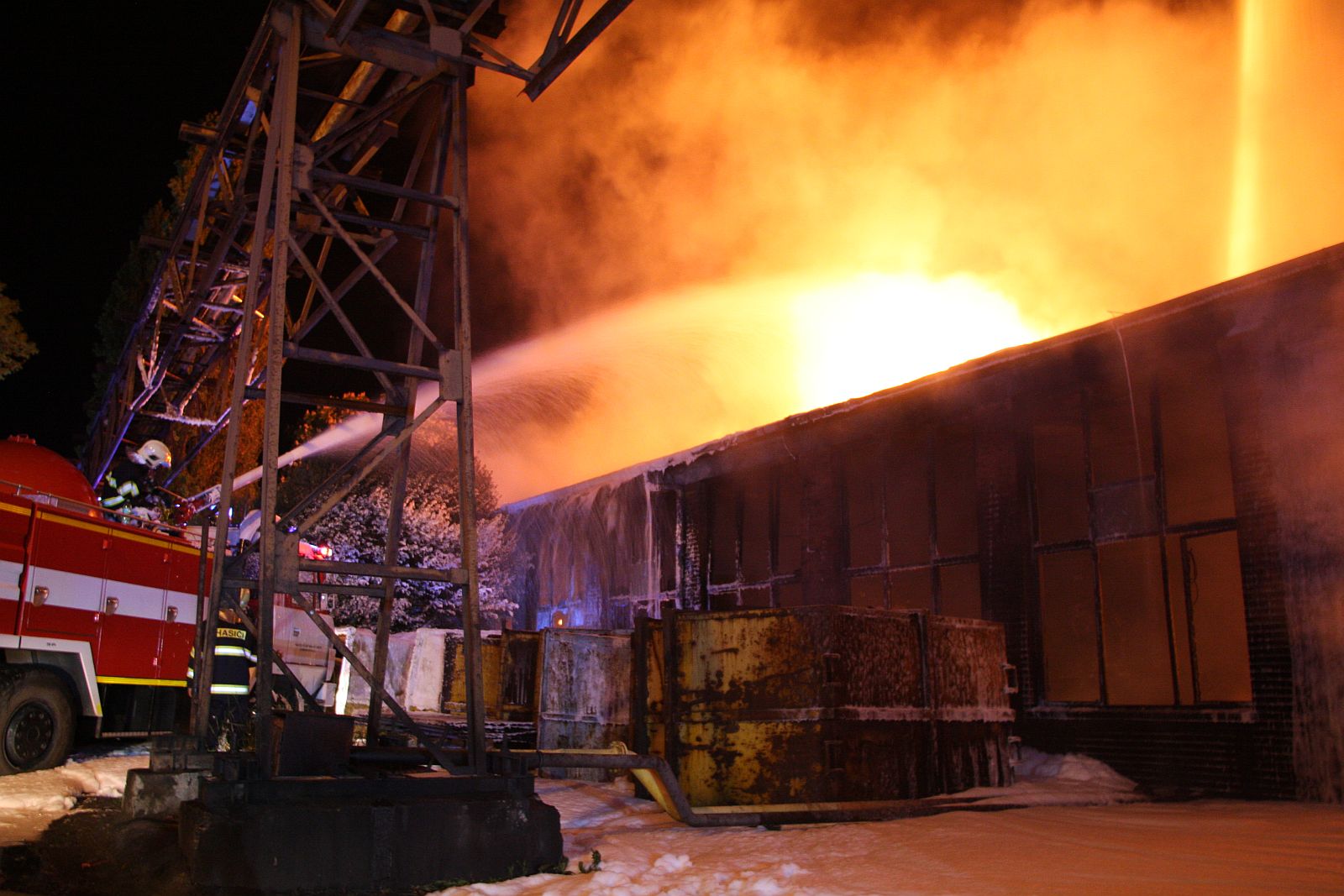 Na místo události byly po půl dvanácté v noci povolány další posilové jednotky. Intenzivním hašením vodou a pěnou ze všech stran objektu se hasičům podařilo zabránit rozšíření požáru na okolní průmyslové objekty.
