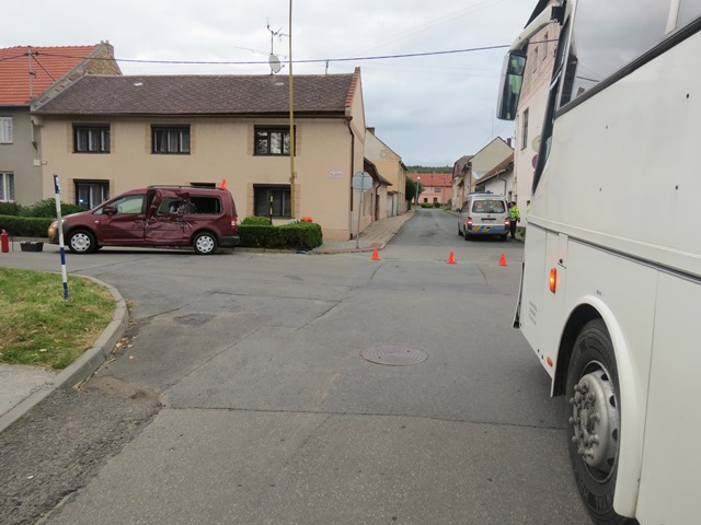 Osmapadesátiletý řidič autobusu jedoucí po vedlejší silnici v křižovatce sice zastavil, ale před rozjetím přehlédl na hlavní komunikaci třiašedesátiletého řidiče automobilu a nedal mu přednost. Došlo tak ke střetu, při kterém autobus čelně narazil do levého boku auta. Uvnitř osobního vozidla se kromě řidiče nacházely dvě děti a dvě ženy. Řidič i obě pětileté holčičky, které seděly v autosedačkách, utrpěli lehká zranění. Nikdo jiný se při nehodě nezranil. Na autobusu však vznikla předběžná škoda sto tisíc korun a na osobním vozidle tři sta tisíc korun. Nehodou se i nadále zabývají dopravní policisté.