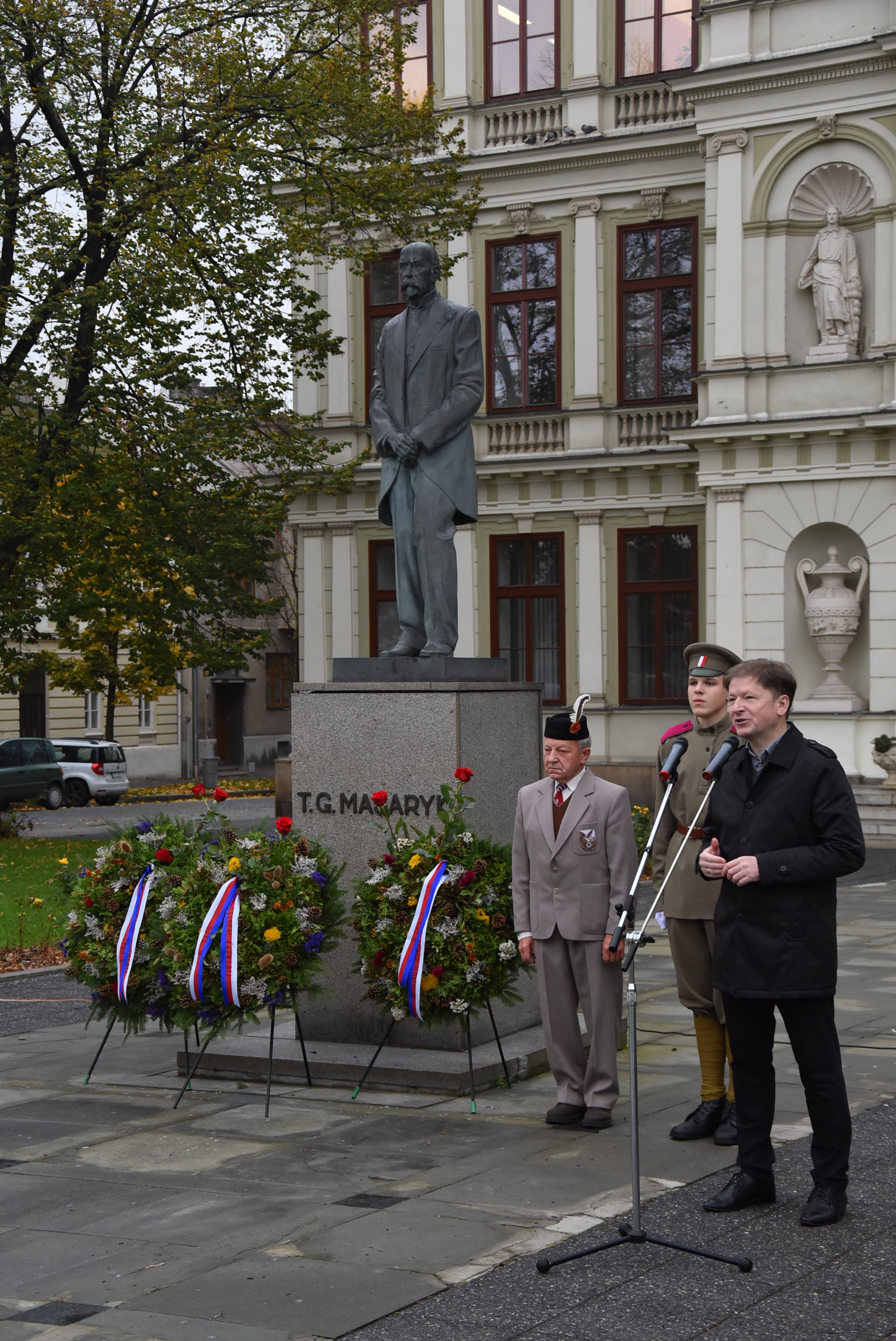 „Je to pro mě vůbec nejvýznamnější svátek,“ uvedl starosta Kroměříže Jaroslav Němec. Ocenil i prvního prezidenta země, Tomáše Garrigue Masaryka. „Taková osobnost nám v současnosti velmi chybí,“ mínil Němec. Příští rok uplyne od založení československé republiky rovných 100 let. „Doufám, že se tady sejdeme v hojnějším počtu,“ doplnil Němec. Deštivé počasí dnes některé návštěvníky odradilo, slavnostního aktu se tak zúčastnilo jen několik desítek lidí.