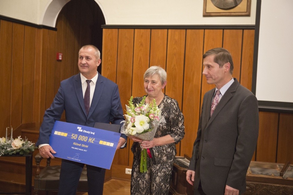 V letošním roce toto ocenění Zlínský kraj udělil paní Růženě Děcké z Valašského Meziříčí, za její celoživotní přínos v oblasti kultury, zejména za propagaci hry na cimbál a lidových i folklorních tradic Cenu, která je spojena s výtvarným symbolem, diplomem a s finanční odměnou, předal Růženě Děcké krajský radní Miroslav Kašný, zodpovědný za kulturu, památkovou péči, spolupráci s církvemi, mládež a sport.