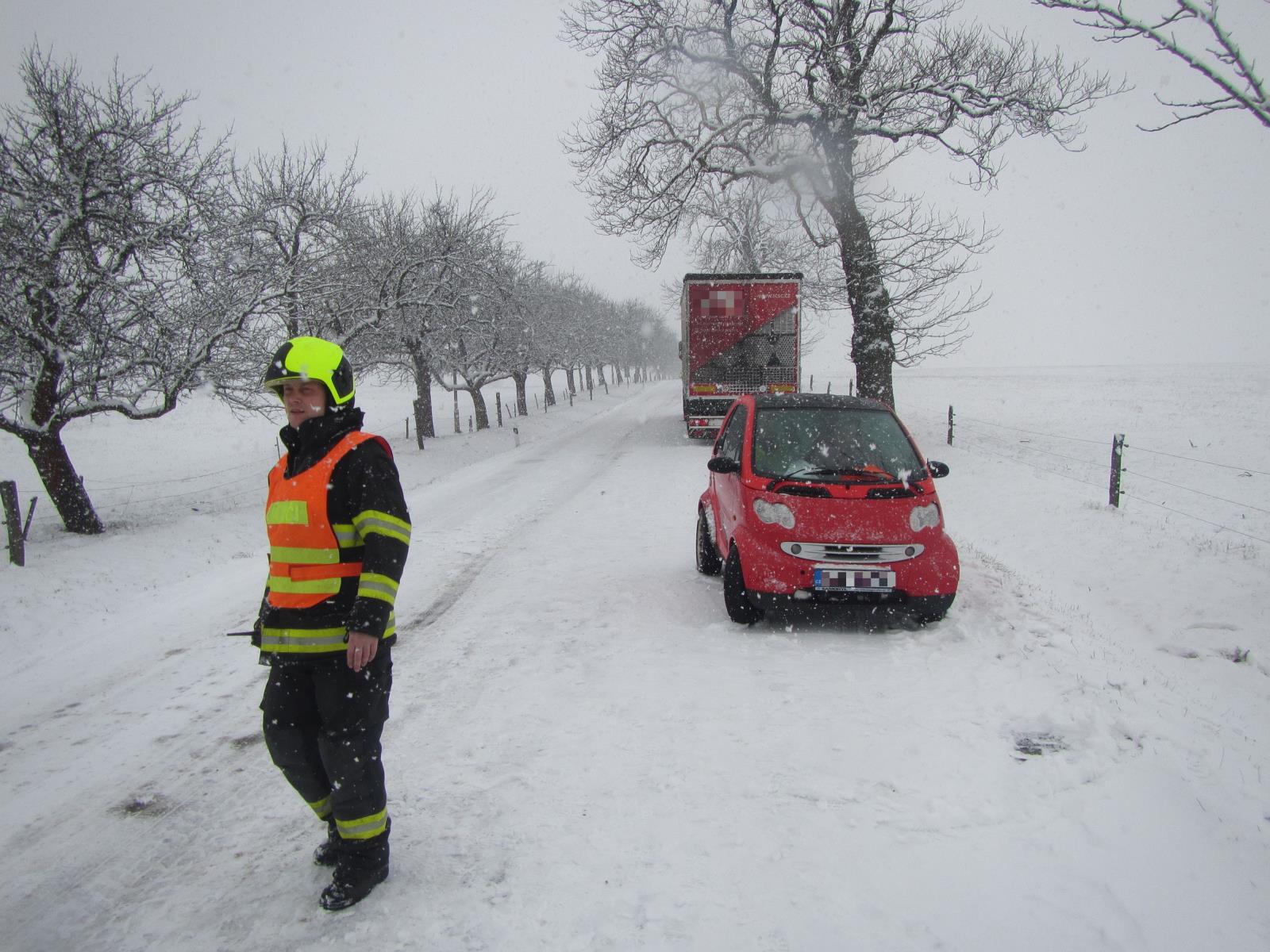 Sníh, ale komplikoval dopravu i během středečního odpoledne a někteří řidiči do svého cíle nedojeli. Hasiči tak vyjížděli k dalším devíti dopravním nehodám.