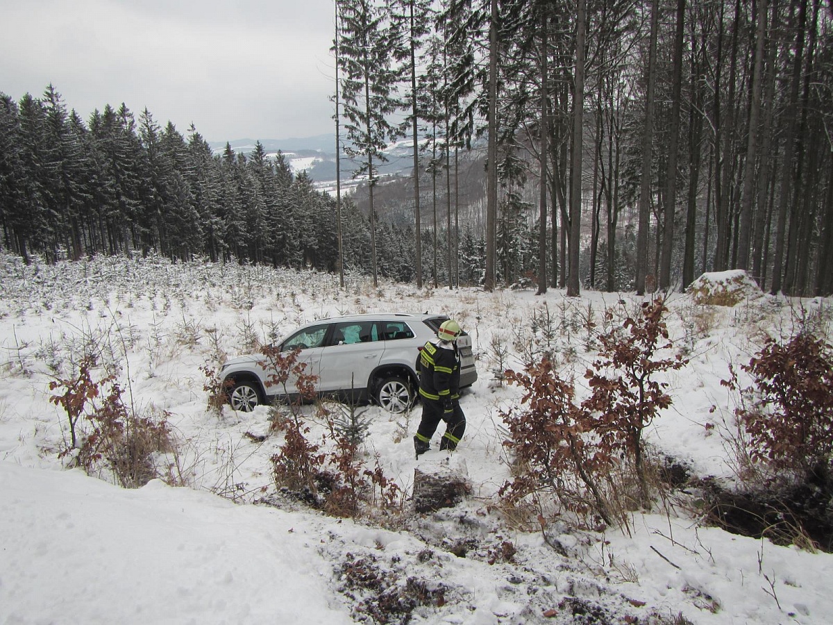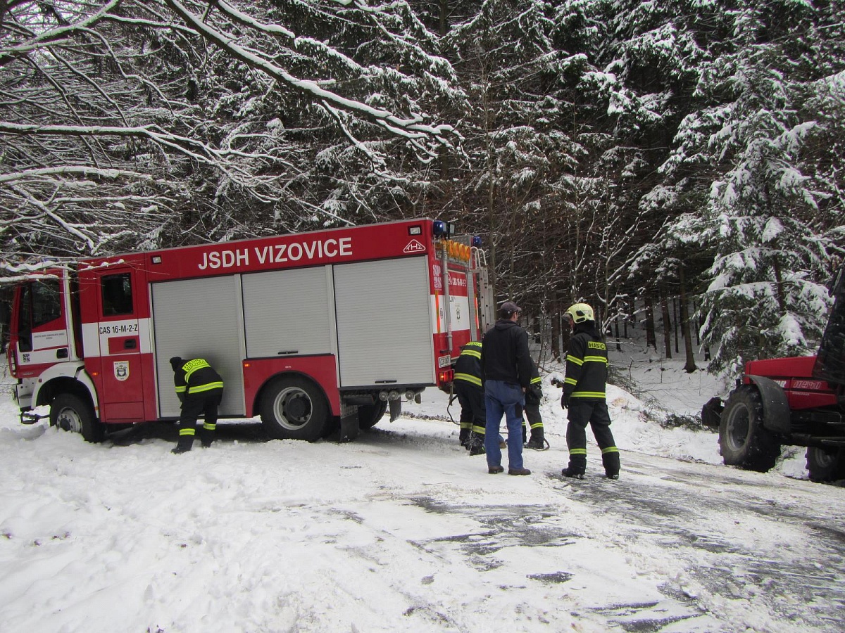 Obě jednotky byly vyslány do Vizovic na Zlínsku, kde havarovalo osobní vozidlo. Navigace navedla řidiče na v zimě neudržovanou komunikaci. Zde na zledovatělé cestě auto sjelo ze srázu a několikrát se přetočilo přes střechu.