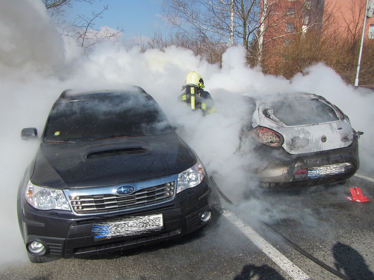 Vyšetřovatel hasičů zjistil, že osobní automobil značky Fiat začal hořet na parkovišti u bytového domu do 5 minut po jeho zastavení. Automobily stály blízko u sebe, a proto plameny přeskočily na sousední zaparkované automobily značky Volkswagen a Subaru.