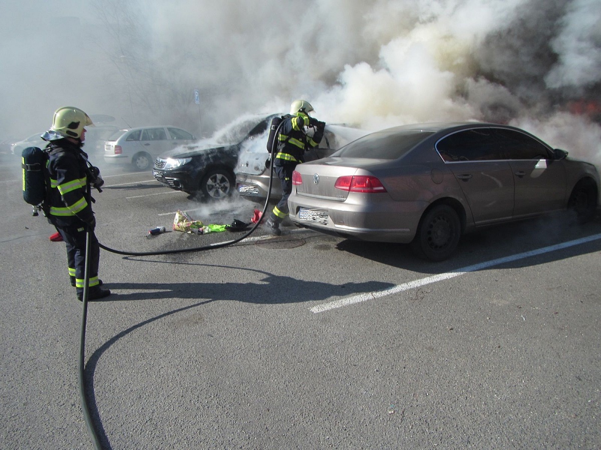Kolem poledne v neděli 25. února 2018 zasahovaly dvě jednotky hasičů u požáru tří osobních automobilů na parkovišti Valachův žleb ve Zlíně.