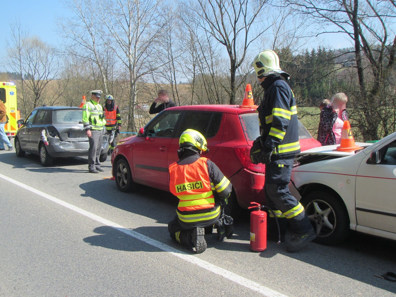 Profesionální hasiči ze Zlína zasahovali dnes, tedy 2. dubna, od 11:57 hodin u dopravní nehody čtyř osobních automobilů v Kostelci u Zlína.