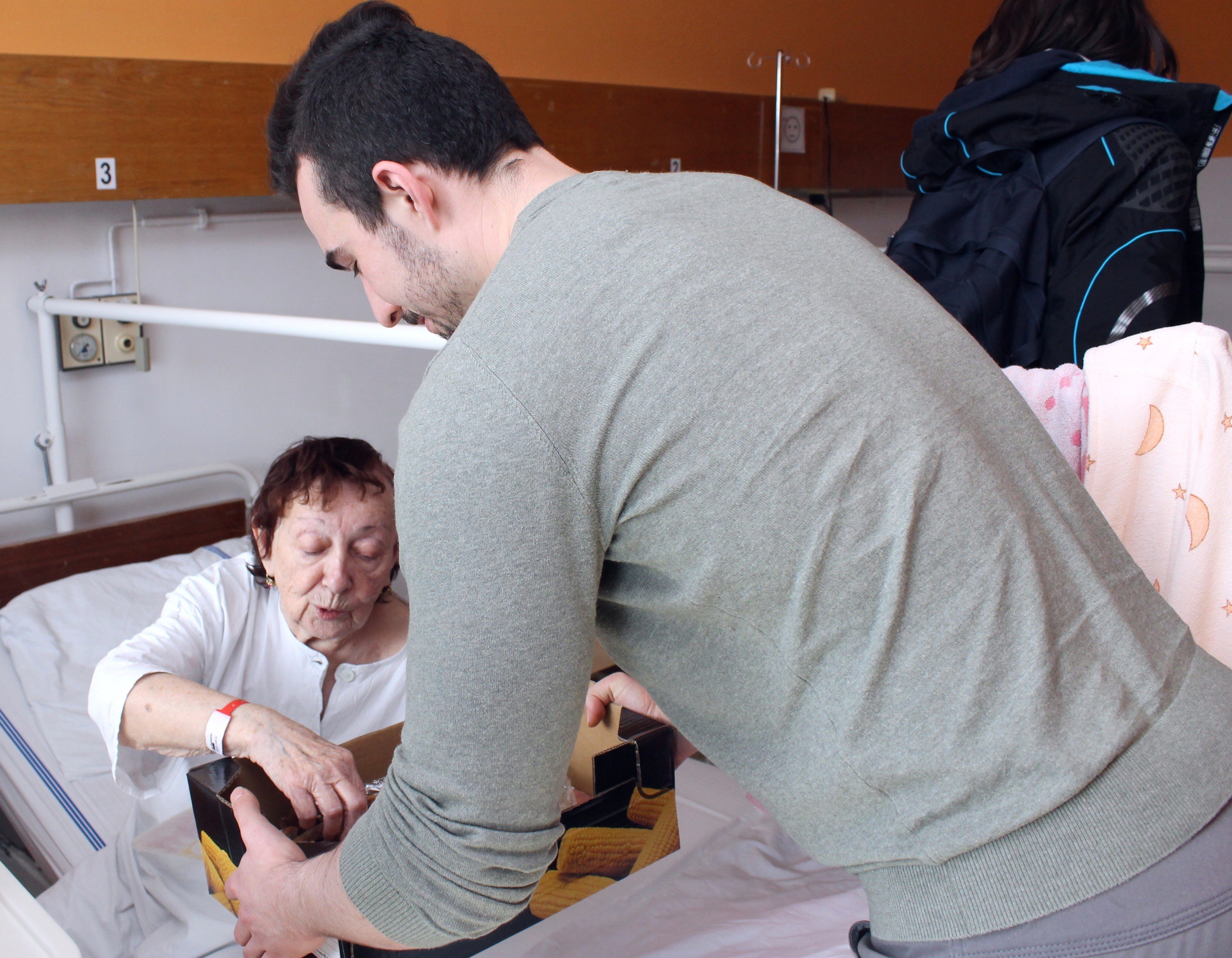 Studenti dokonce přinesli – pro ty pacientky, kterým to zdravotní stav umožnil – malé sladkosti a dárečky dětí z MŠ Čtyřlístek Kostelany nad Moravou. Koledníci se zaměřili na seniorky a jedna z nich, Naděžda Letochová ze Zlína (na fotografii), to velmi uvítala.