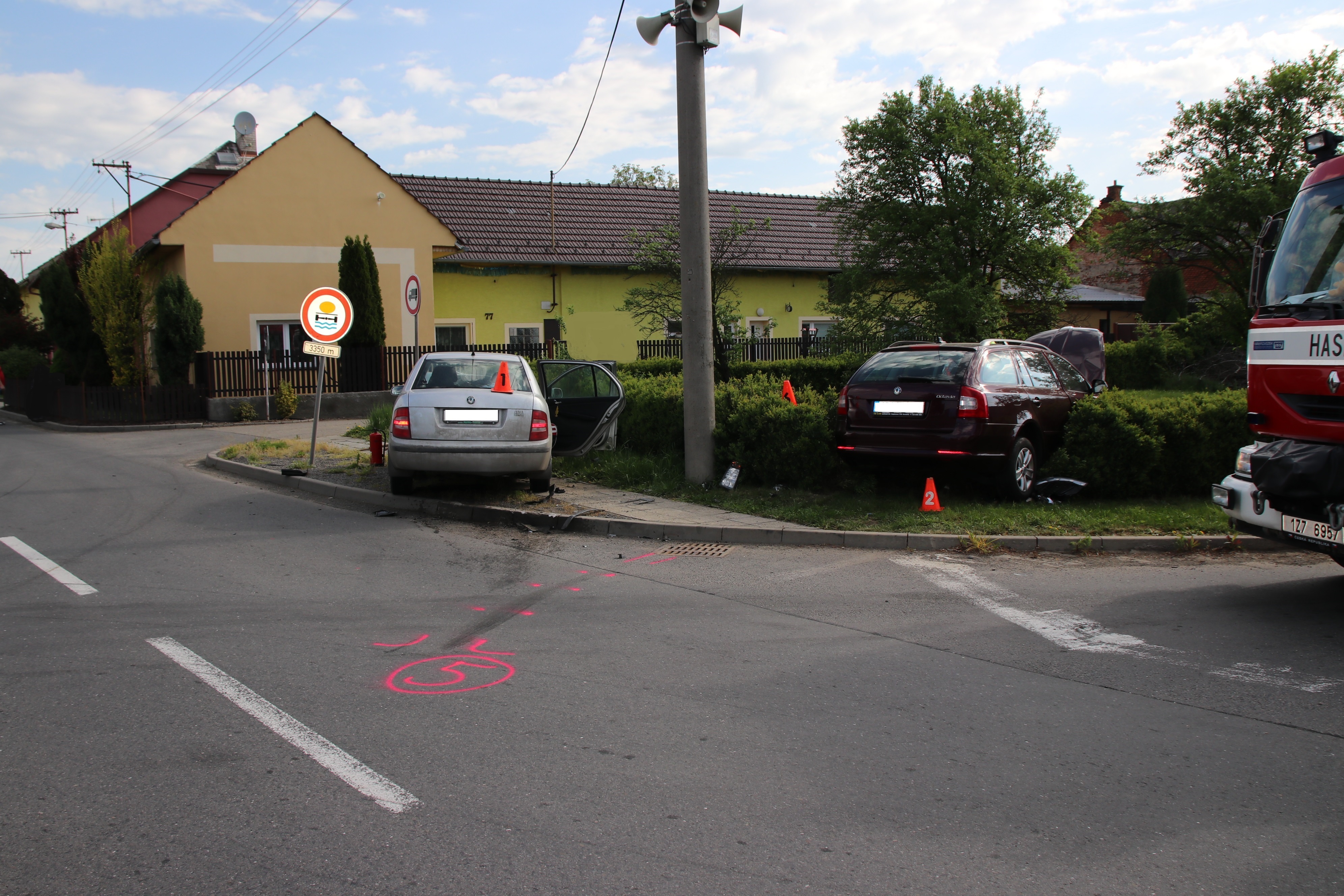 První se stala v osm hodin ráno ve Skašticích. Sedmasedmdesátiletý řidič přijížděl po vedlejší silnici od Chropyně a chtěl křižovatkou projet rovně. Nedal přednost vozidlu přijíždějícímu po hlavní silnici od Kroměříže. Po nárazu byla osobní vozidla odhozena mimo komunikaci. Oba řidiči utrpěli lehké zranění. Záchranáři převezli sedmasedmdesátiletého i jednašedesátiletého muže k dalšímu ošetření do kroměřížské nemocnice. Před převozem provedli policisté Obvodního oddělení Hulín u obou řidičů dechové zkoušky, s negativním výsledkem. Škoda na vozidle staršího z řidičů byla odhadnuta na 60 tisíc, u druhého vozu na 70 tisíc korun. Dvoutisícová škoda vznikla na živém plotě.