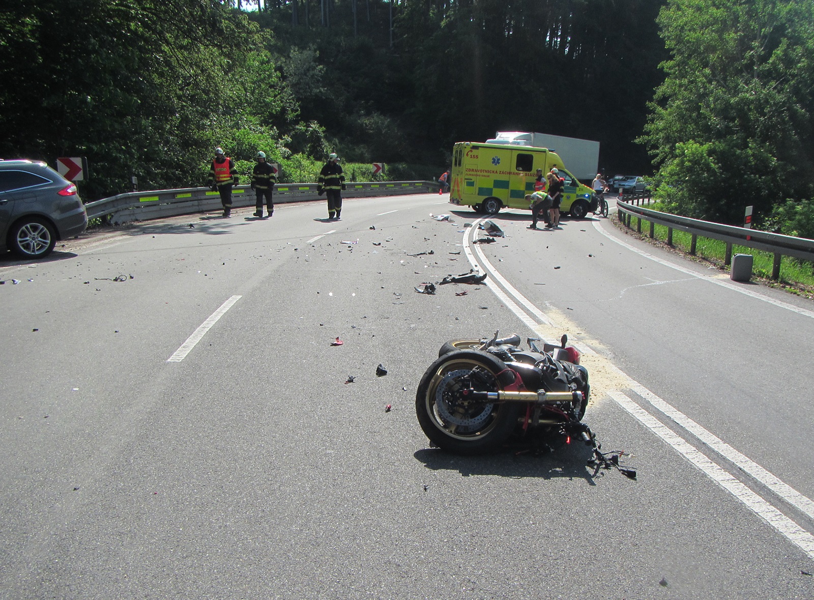 Řidič motocyklu byl v době příjezdu hasičů v péči zdravotnické záchranné služby. Zranění byla na tolik vážná, že byl k transportu zraněného povolán vrtulník. Poškozený osobní automobil byl po nárazu odhozen do příkopu u silnice. Uniklý benzín z motorky hasiči zasypali sypkou sorbční látkou.