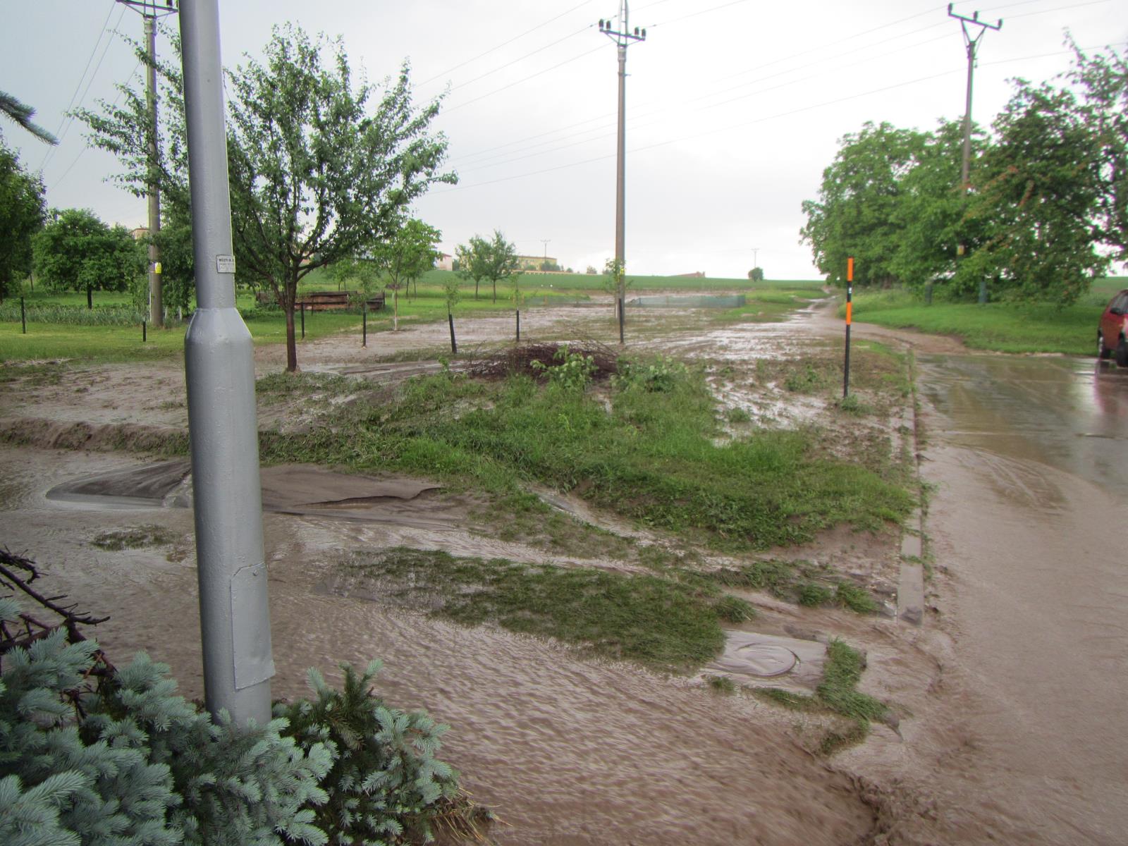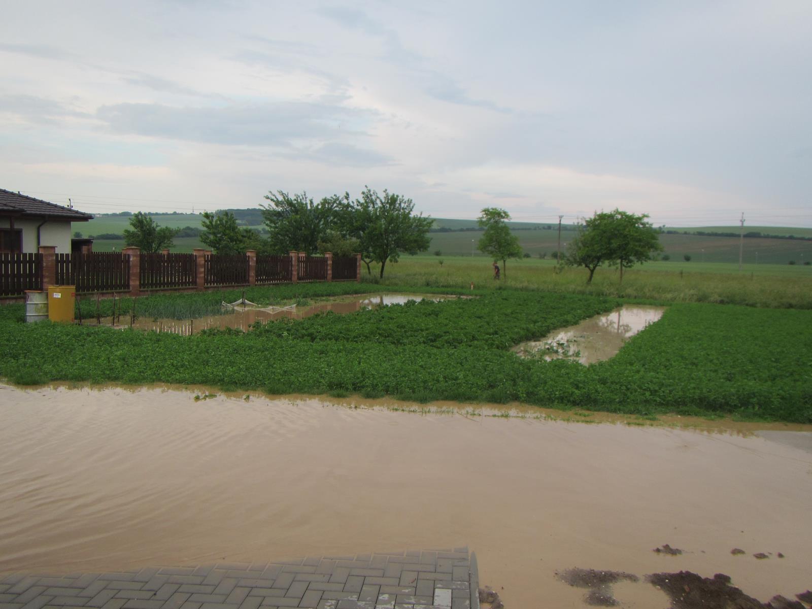O půl osmé nakonec byli hasiči vysláni do Uherského Hradiště do místní části Sady, kde se vytvořila velká laguna, kterou hasiči odčerpali.