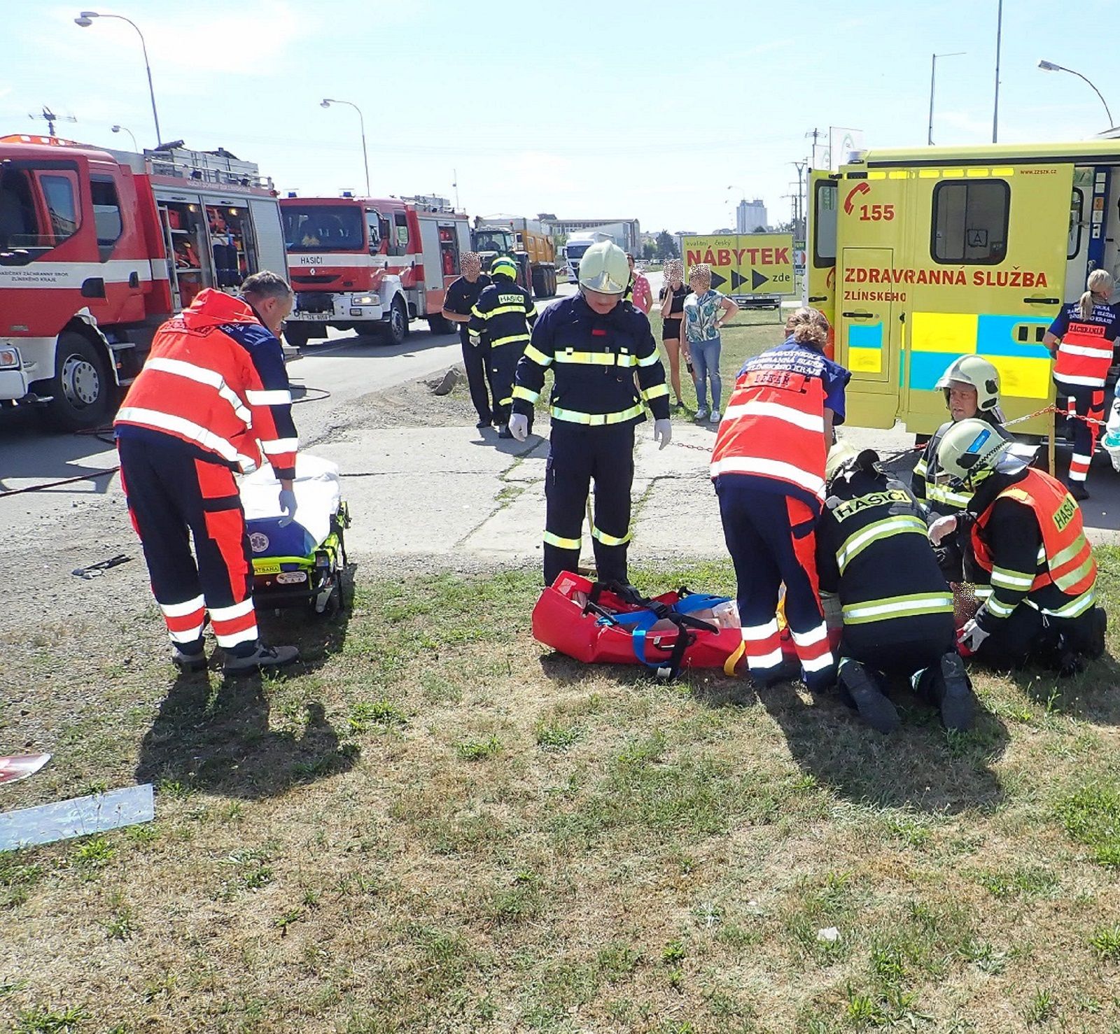 U nehody kamionu a osobního automobilu na ulici Kaplanova v Kroměříži zasahovali od 9:59 hodin profesionální hasiči z Kroměříže.