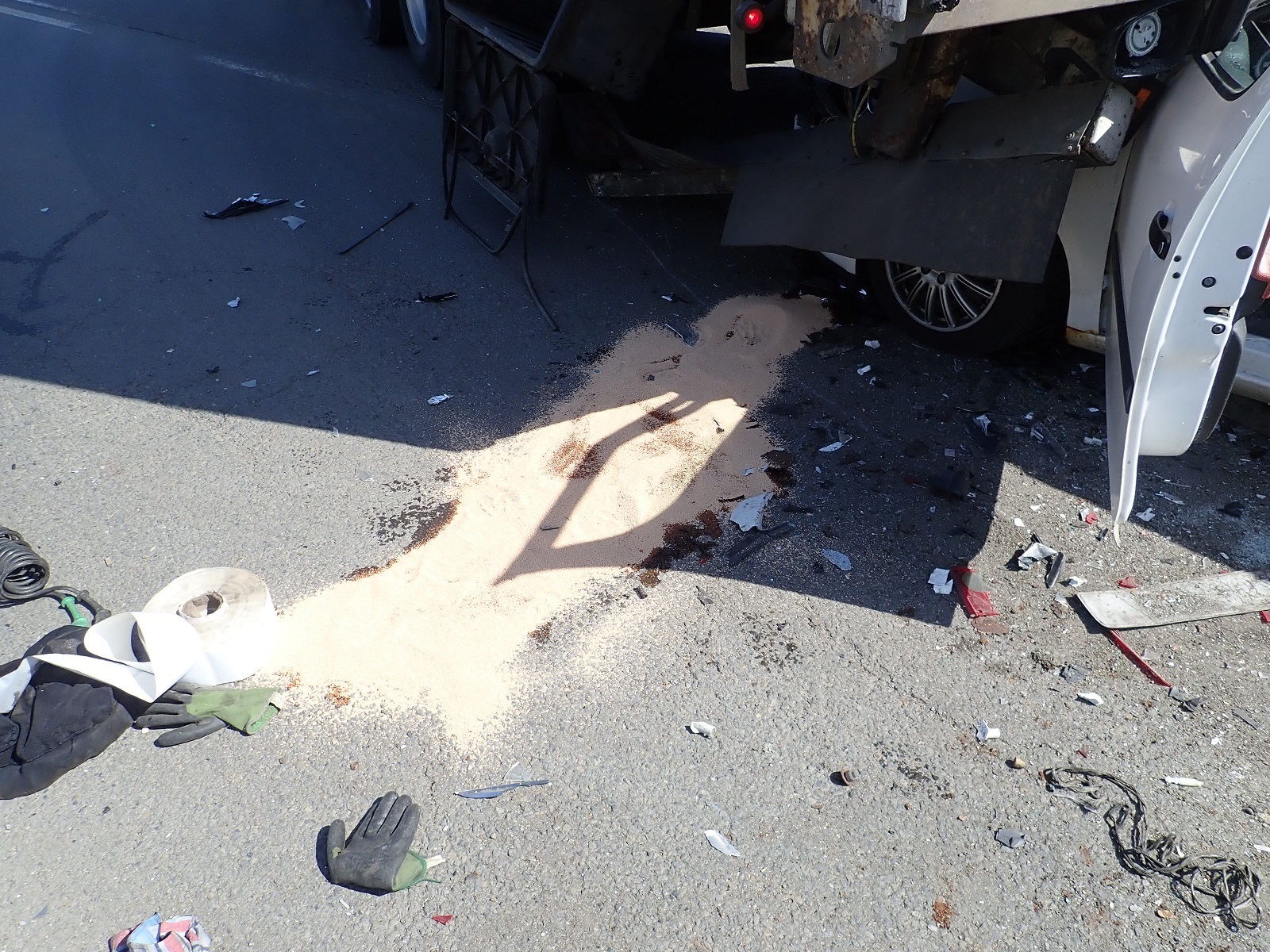 Hasiči provedli protipožární opatření a uniklé provozní kapaliny zasypali sypkou sorpční látkou. Poškozený osobní automobil vytáhli z pod návěsu kamionu s pomocí navijáku, kterým jsou vybavena zásahová vozidla hasičů.
