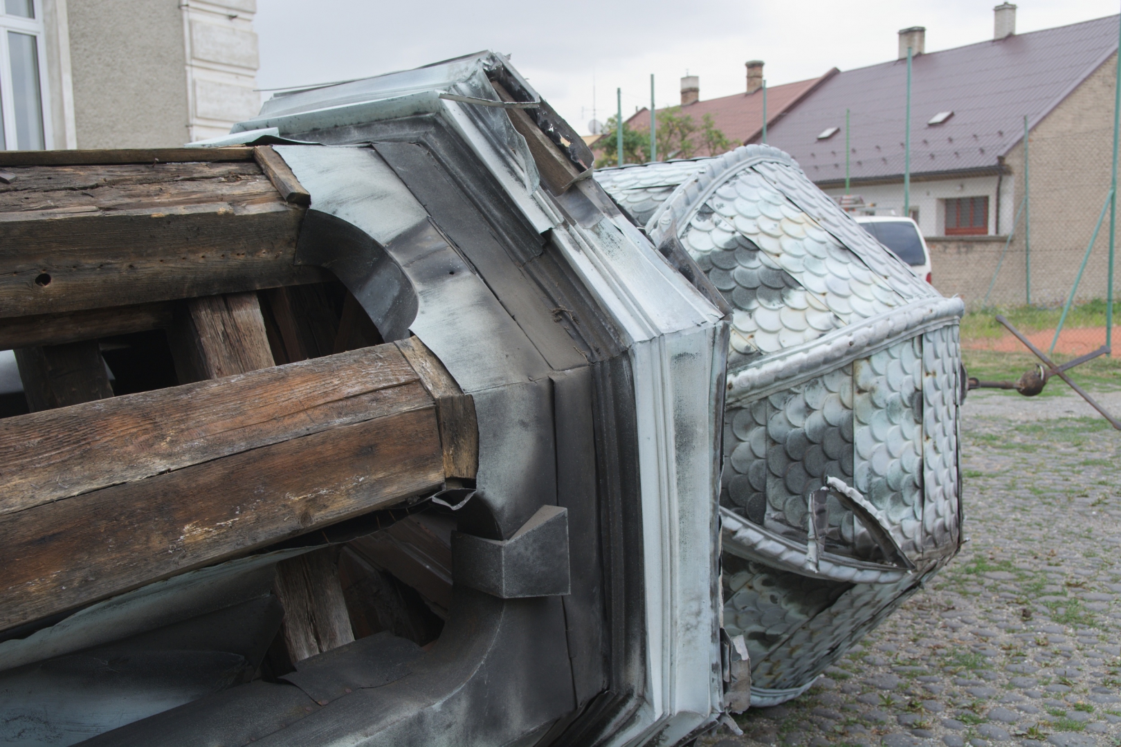 Pozinkovaný plechový plášť tzv. sanktusníku byl na mnoha místech popraskaný a odchlípnutý, dřevěná konstrukce věžičky byla částečně shnilá, napadená dřevokazným hmyzem a zejména litinový kříž na špičce sanktusové věžičky se začal naklánět, protože dřevo, ve kterém byl zasazen, se proměnilo v hromádku shnilých třísek. Ostatně to lze vidět i na obrázcích fotoreportáže.
