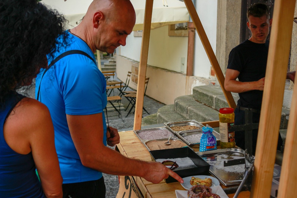V nabídce najdete výbornou italskou kávu Verro, zajímavá vína z vinařství Cícha z Blatnice pod Svatým Antoníčkem, velký výběr domácích dortů, velmi oblíbenou zmrzlinu UGO, domácí limonády dle sezony a nový pivní ležák Gradus z pivovaru Zubr, který si získal sympatie u milovníků piva pro svou chuť a říz. K jídlu najdete polévku, zeleninové saláty, sýry, trdelník a vždy nějakou překvapivou dobrotu navíc. Už jste vyzkoušeli trdelník s olomouckými tvarůžky, s hermelínem nebo grilovanou domácí klobáskou a se zelím?