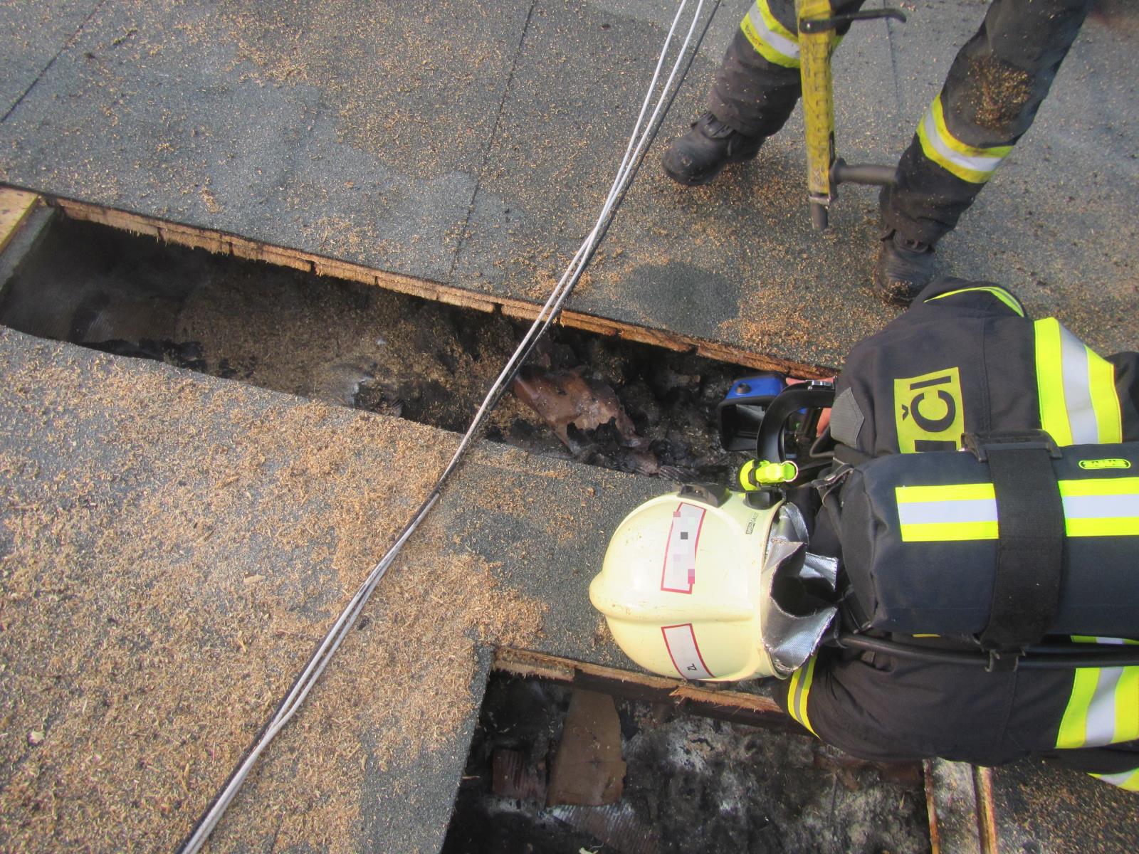 Po příjezdu na místo průzkumem zjistili, že zde hoří střecha dvoupatrového rodinného domu. Před příjezdem hasičů požár hasili provizorními prostředky místní obyvatelé spolu s majitelem, díky čemuž se požár dál nešířil. Hasiči ihned po příjezdu jedním vysokotlakým proudem požár dohasili. Poté za použití motorové pily rozřezali část dřevěné konstrukce střechy a dohašovali skrytá ohniska.