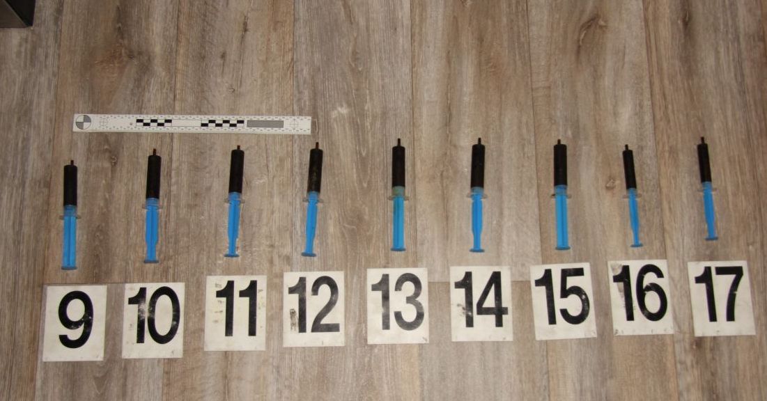 Při domovní prohlídce kriminalisté zajistili devět stříkaček s připraveným extraktem, potřebný materiál k odesílání zásilek, štítky s nadepsanou adresou odesílatele, několik krabic se sušenou marihuanou, vakuovací zařízení a další věci.