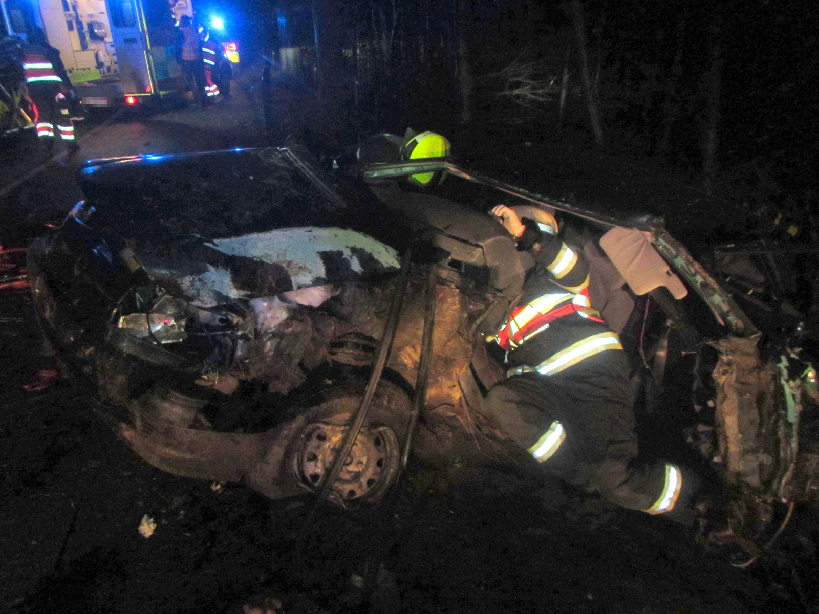 Mladý muž, který s osobním vozidlem zřejmě vjel do pravotočivé zatáčky příliš rychle, vyjel ze silnice a narazil do stromu. Řidič byl ve voze zaklíněn a hasiči jej z vraku vozu vyprostili pomocí speciálního hydraulického zařízení. Svým zraněním však bohužel na místě podlehl. V autě byli ještě dva spolujezdci, oba po havárii skončili v péči lékařů.
