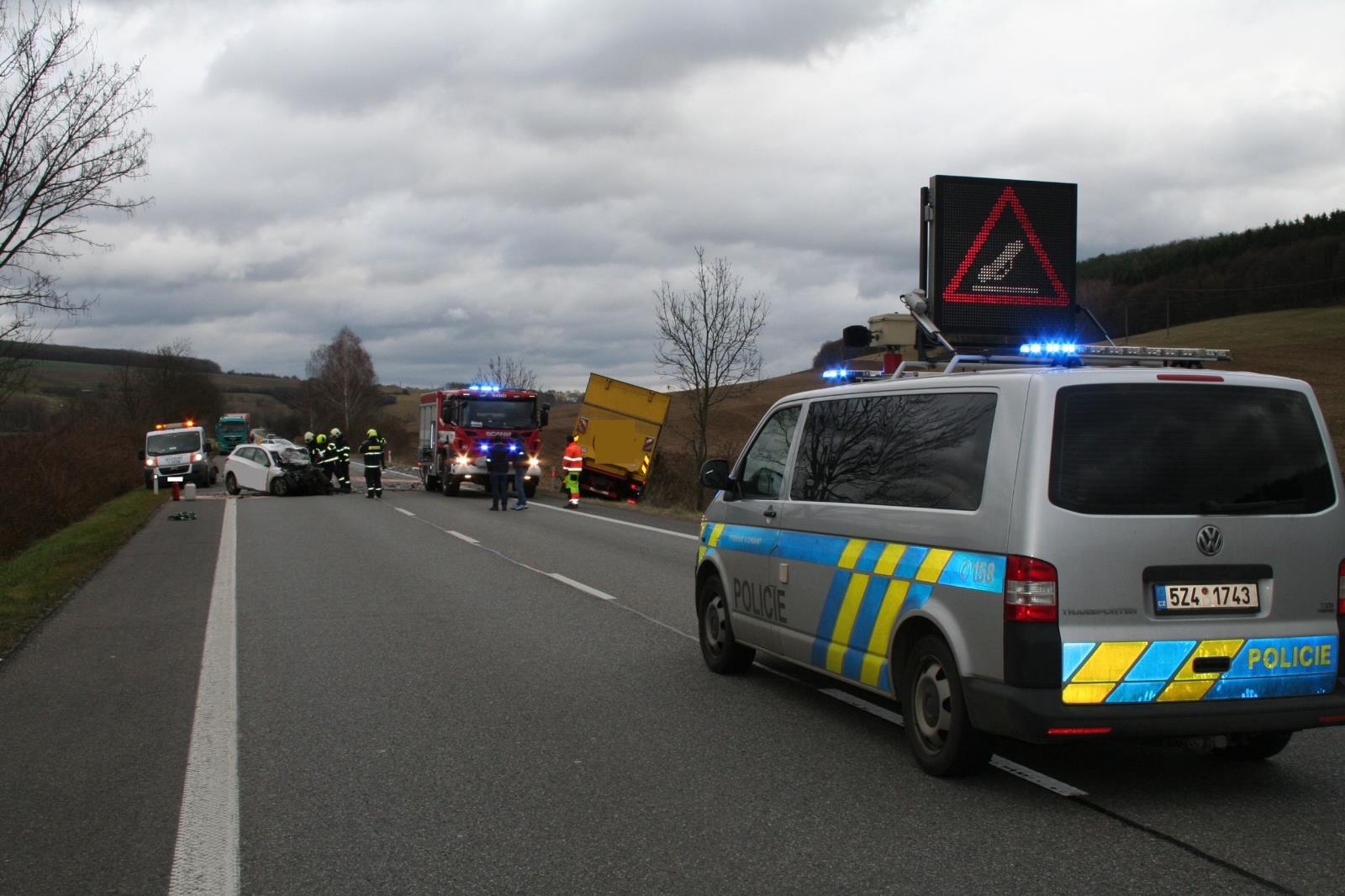 Tragická dopravní nehoda, ke které došlo dnes dopoledne krátce před jedenáctou hodinou, zablokovala hlavní silniční tah I/50 u obce Drslavice.