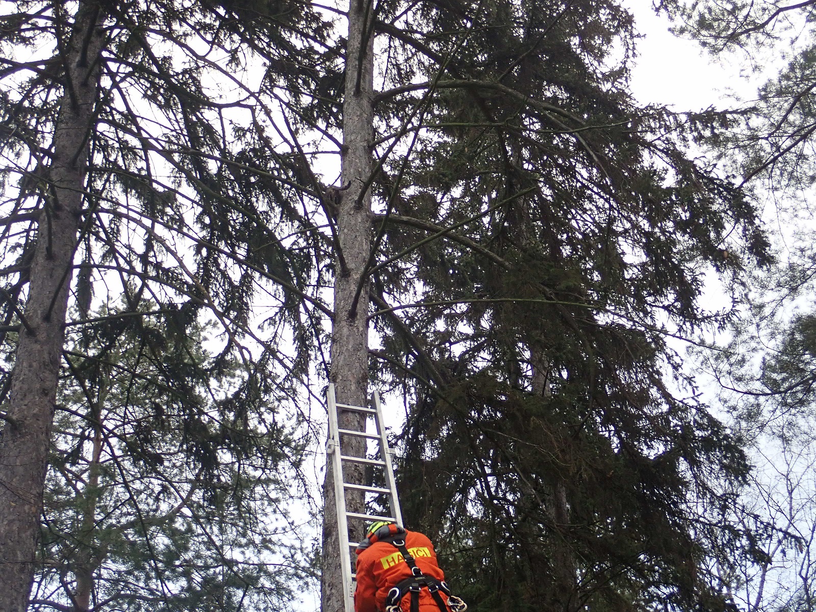 Kotě bylo v době příjezdu hasičů ve výšce asi 8 m a podle zaměstnanců léčebny už bylo na stromě druhý den. Velitel zásahu rozhodl, že kotě bude ze stromu sundáno s pomocí nastavovacího žebříku. Po sestavení žebříku a zahájení zachraňovacích prací ale kotě usoudilo, že nastal čas hry a povylezlo výše. Velitel zásahu si proto vyžádal příjezd výškové techniky s dosahem 30 metrů.