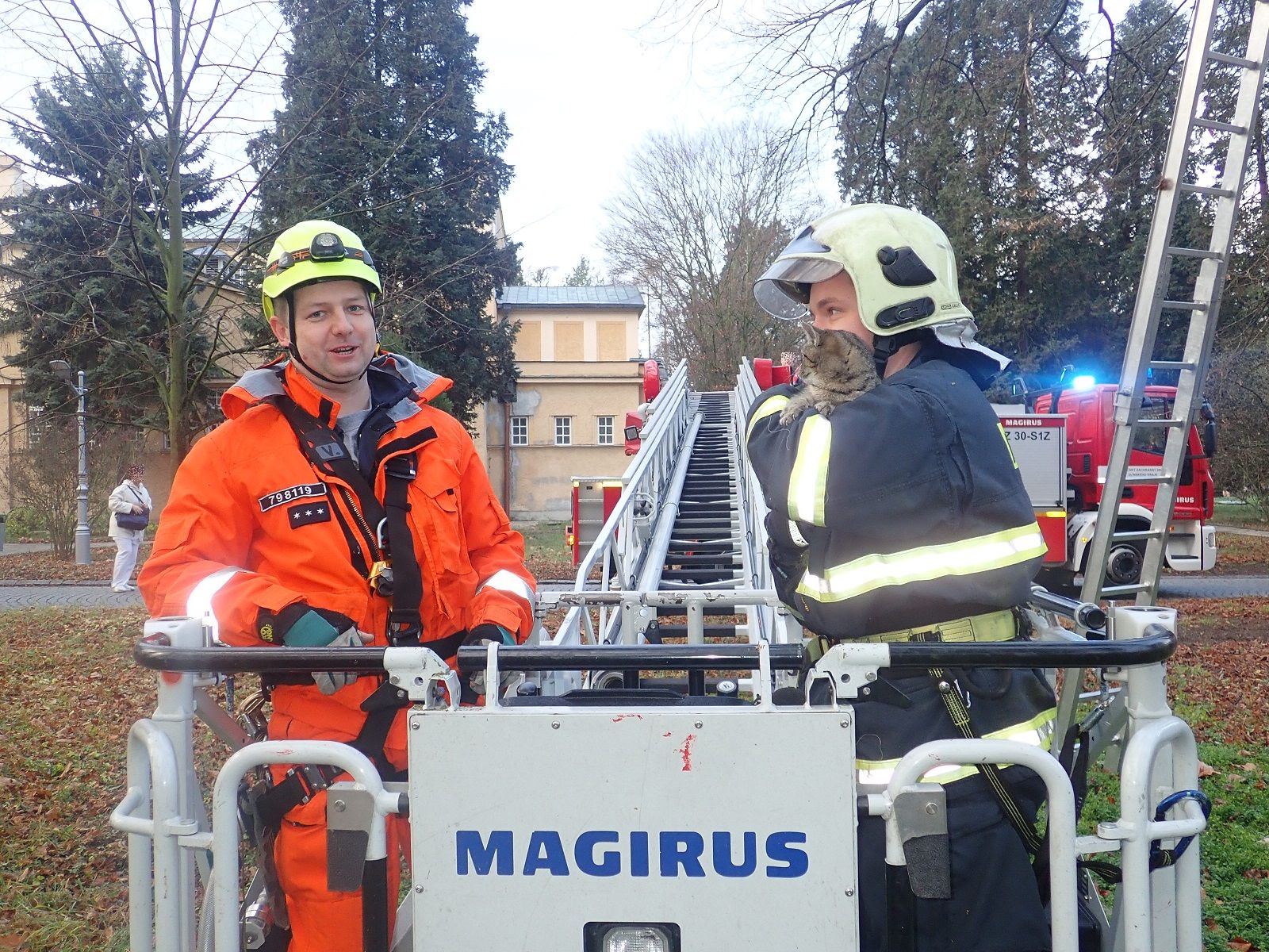 Profesionální hasiči zachraňovali v pátek 28. prosince od 8:15 hodin kotě ze stromu v areálu psychiatrické léčebny v Kroměříži.