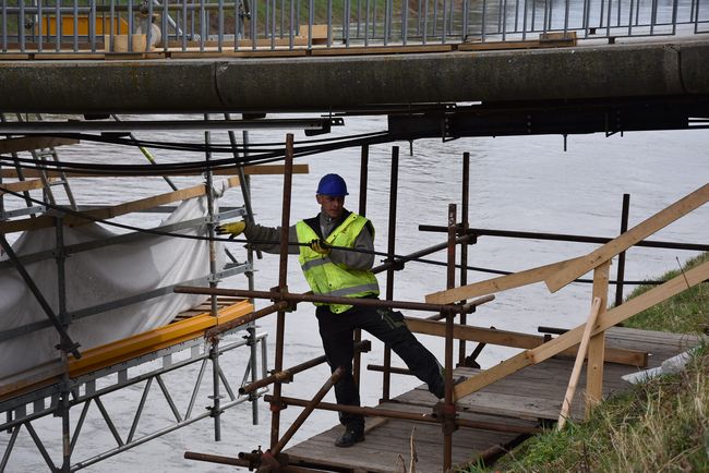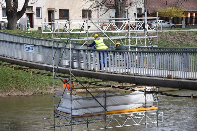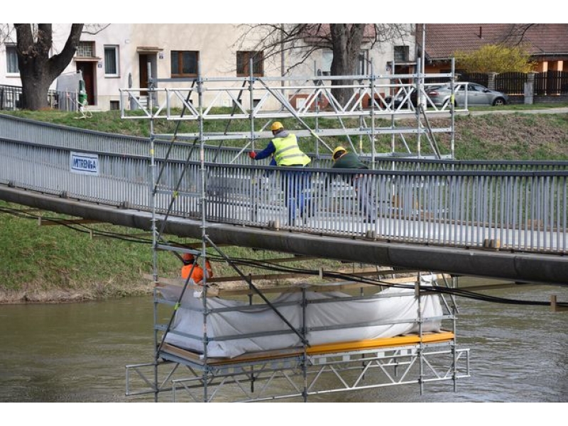 Práce na opravě lávky pro pěší přes řeku Moravu výrazně pokročily. Dělníci brněnské společnosti Mitrenga – stavby začali dnes natahovat lana, která lávku podepřou. „Dostáváme se do zásadní části prací, jsem tomu rád,“ uvedl starosta Jaroslav Němec. Kvůli nepříznivému lednovému počasí, které umožnilo zahájení prací na lávce až v polovině měsíce, práce nebudou dokončeny do 30. března. „V dubnu bychom ale chtěli lávku otevřít,“ dodal Němec.