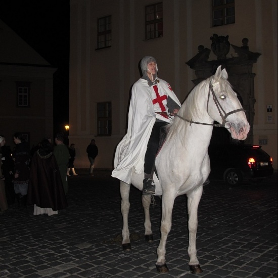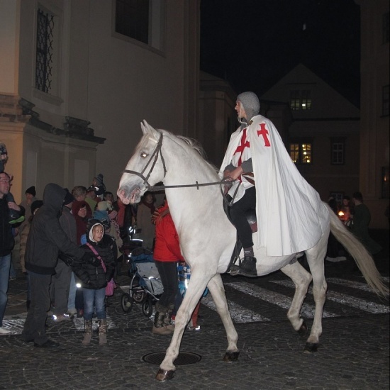 Svítící průvod se od Jánského kostela odebral ke kašně na Velkém náměstí, kde byl pro děti připraven program v podobě ohňové show, šermířských soubojů a tanečních ukázek studentů Arcibiskupského gymnázia, se kterými nakonec děti udělaly hada a společně si zatančily. Za odměnu dostaly všechny děti perníček a obrázek sv. Martina. Z rozzářených dětských očí bylo zřejmé, že se akce povedla.