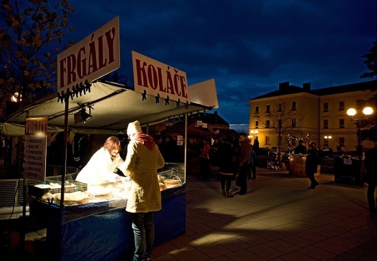 Dobrým jídlem a především prvním letošním vínem ožilo v pondělí 11. listopadu Hanácké náměstí v Kroměříži. Přesně v 11 hodin a 11 minut zahájila starostka Daniela Hebnarová letošní Svatomartinské hodování, které nabídlo nejen ochutnávku svatomartinských vín různých značek, chutí a barev, ale i předvánočně laděný jarmark a nejrůznější sladké i slané pochoutky.