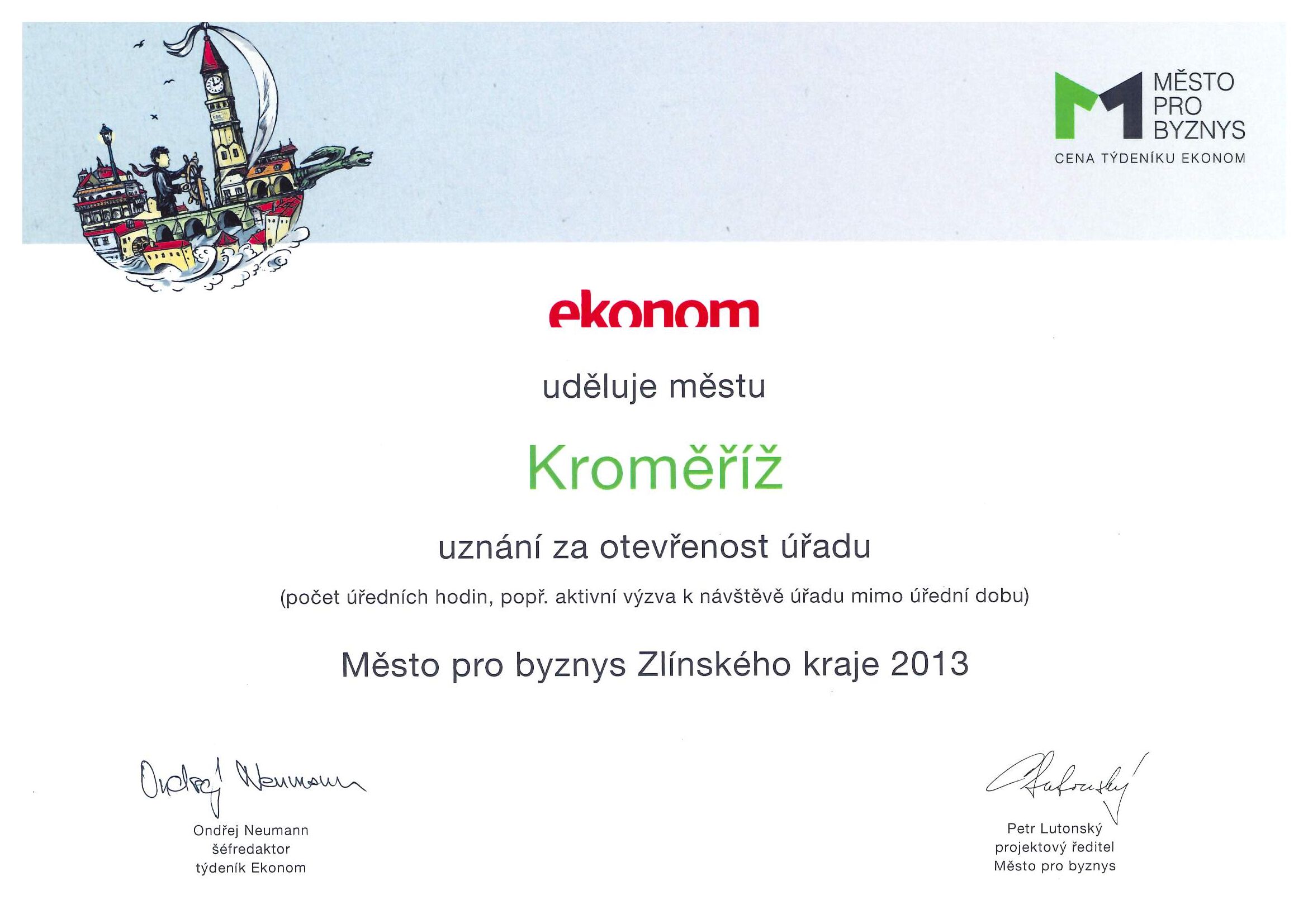 Pěkné čtvrté místo ze třinácti hodnocených obsadilo město Kroměříž ve srovnávací anketě Město pro byznys, která sleduje a srovnává vytváření podmínek pro malé a střední podnikání ze strany samospráv. Kroměřížská radnice zároveň získala uznání za otevřenost úřadu. Město pro byznys je srovnávací výzkum, do kterého se jednotlivá města nepřihlašují, ale jsou hodnocena na základě mnoha sledovaných kritérií a anonymních průzkumů, které zahrnují všechny oblasti, mající pro podnikatele a firmy strategický význam. V České republice je hodnoceno 205 měst s rozšířenou působností a 22 městských částí města Prahy.
